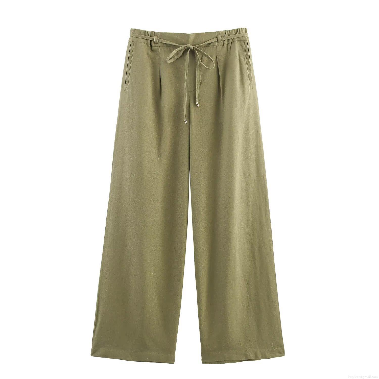 • Women Linen Wide Leg Pants High Waist Elastic Drawstring Loose Casual Trousers Summer Vacation Breathable Solid Color Cotton Linen Style Bottoms For Women