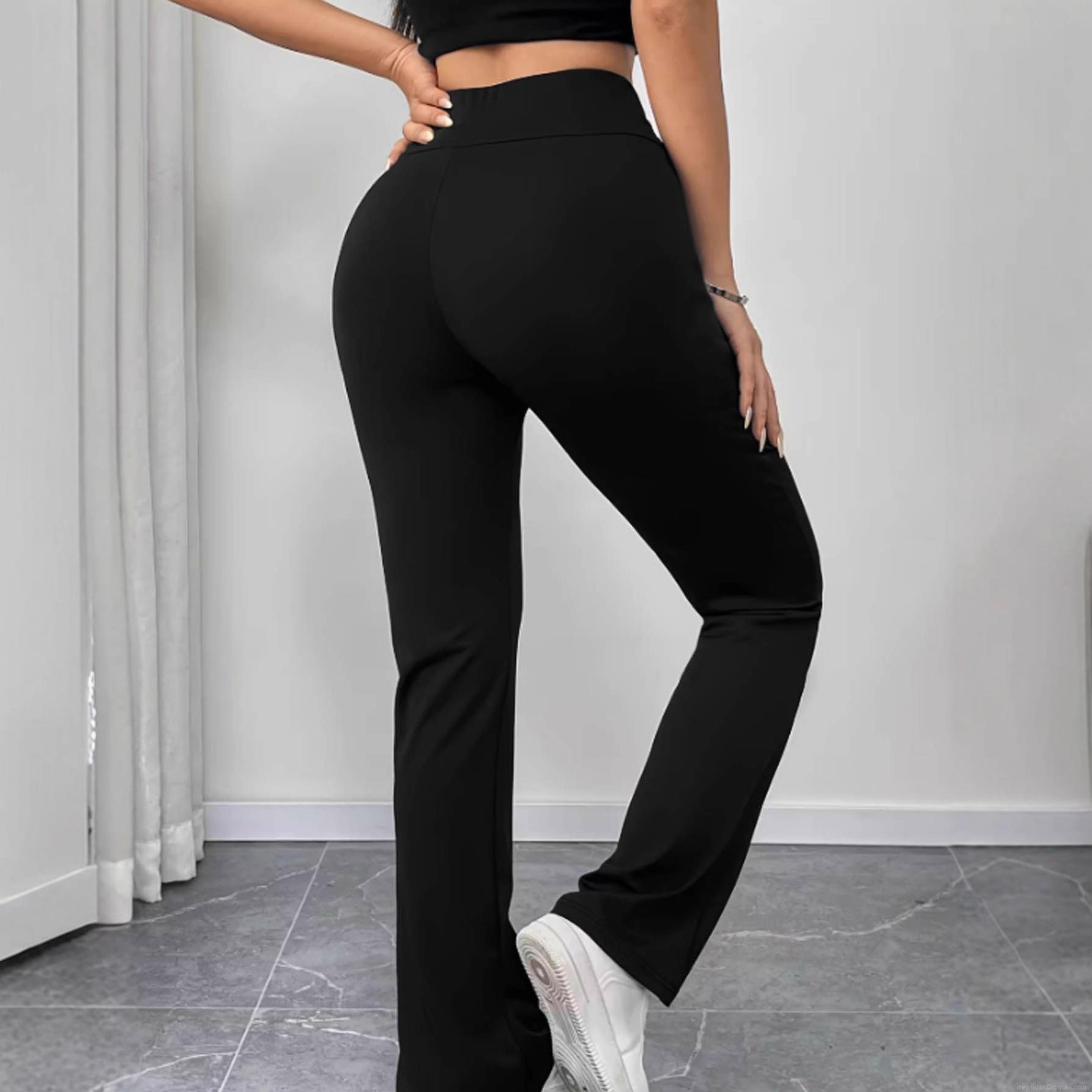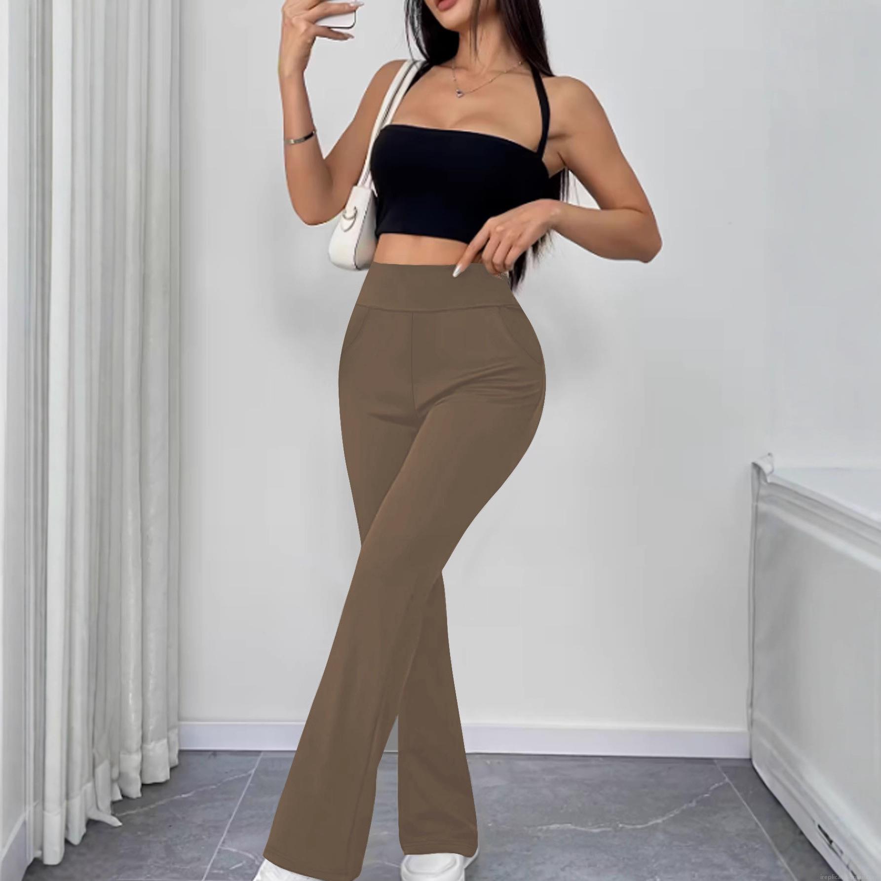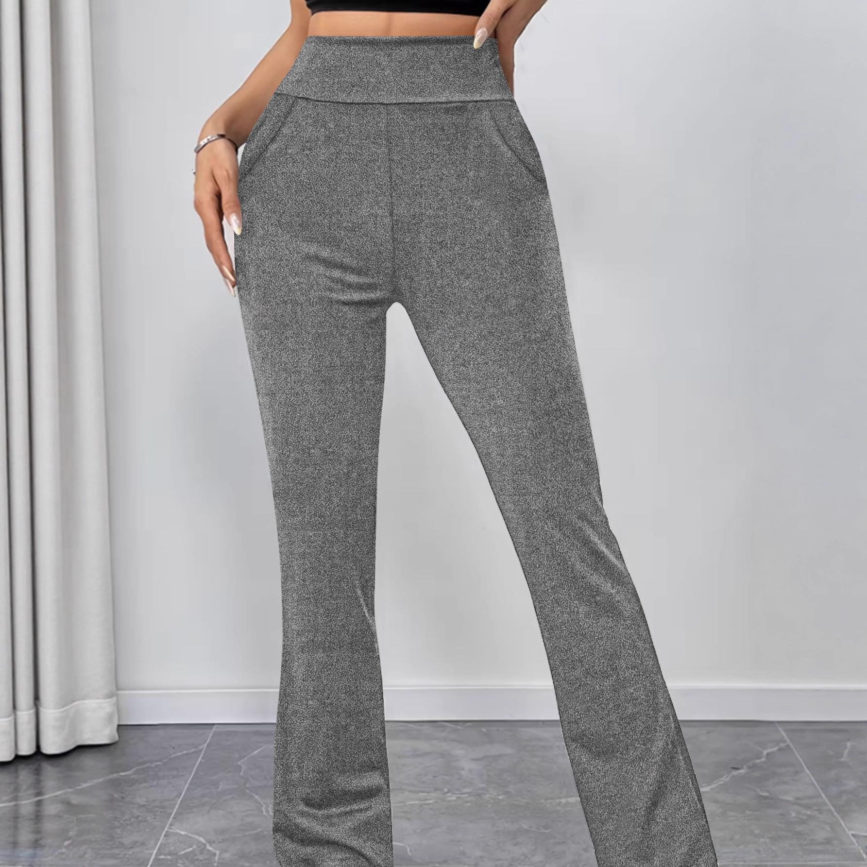 • Women Plus Size High Waisted Flare Pants Knit Polyester Spandex Slimming Casual Trousers With Pockets Stretchy Wide Leg Bell Bottom Yoga Pants For Daily Streetwear