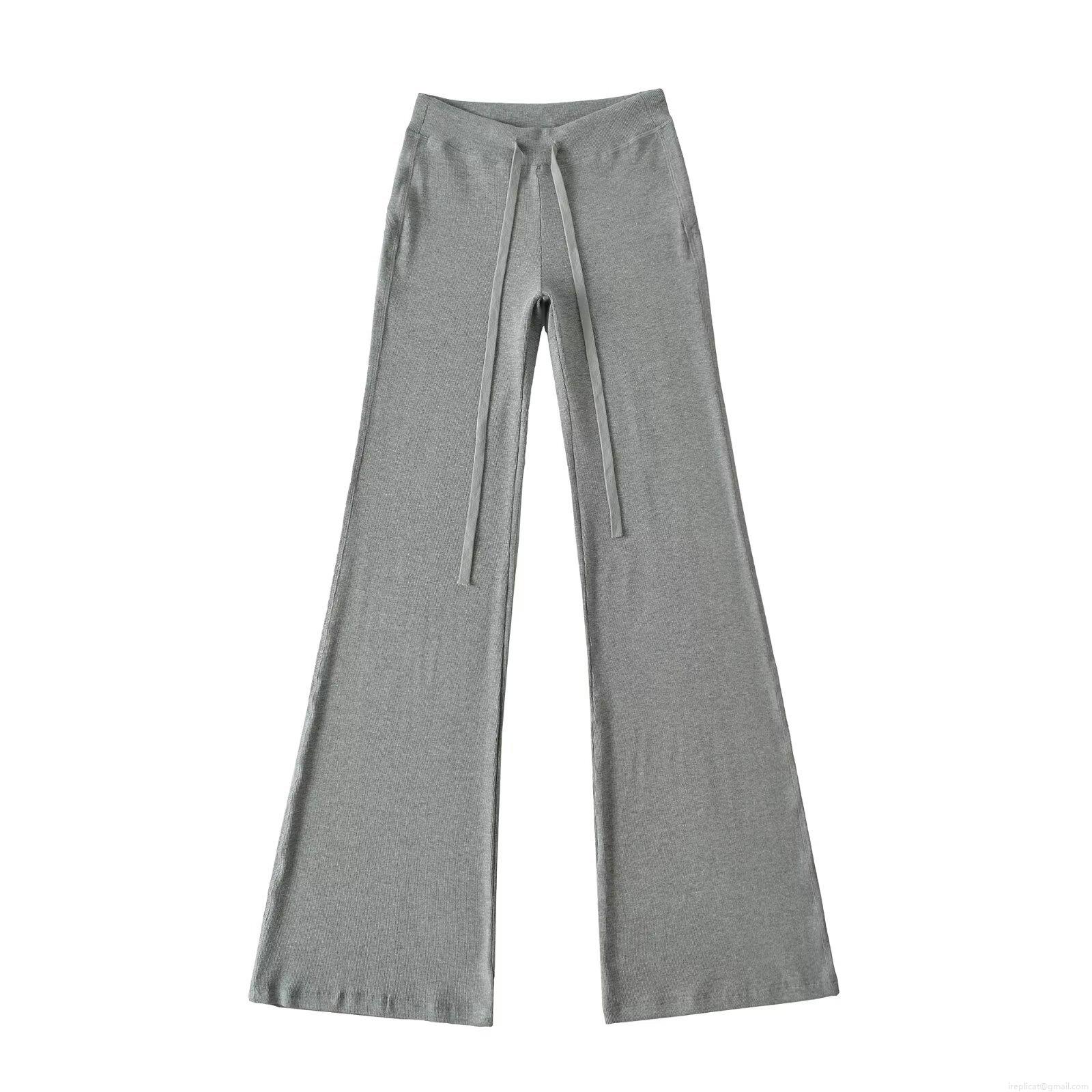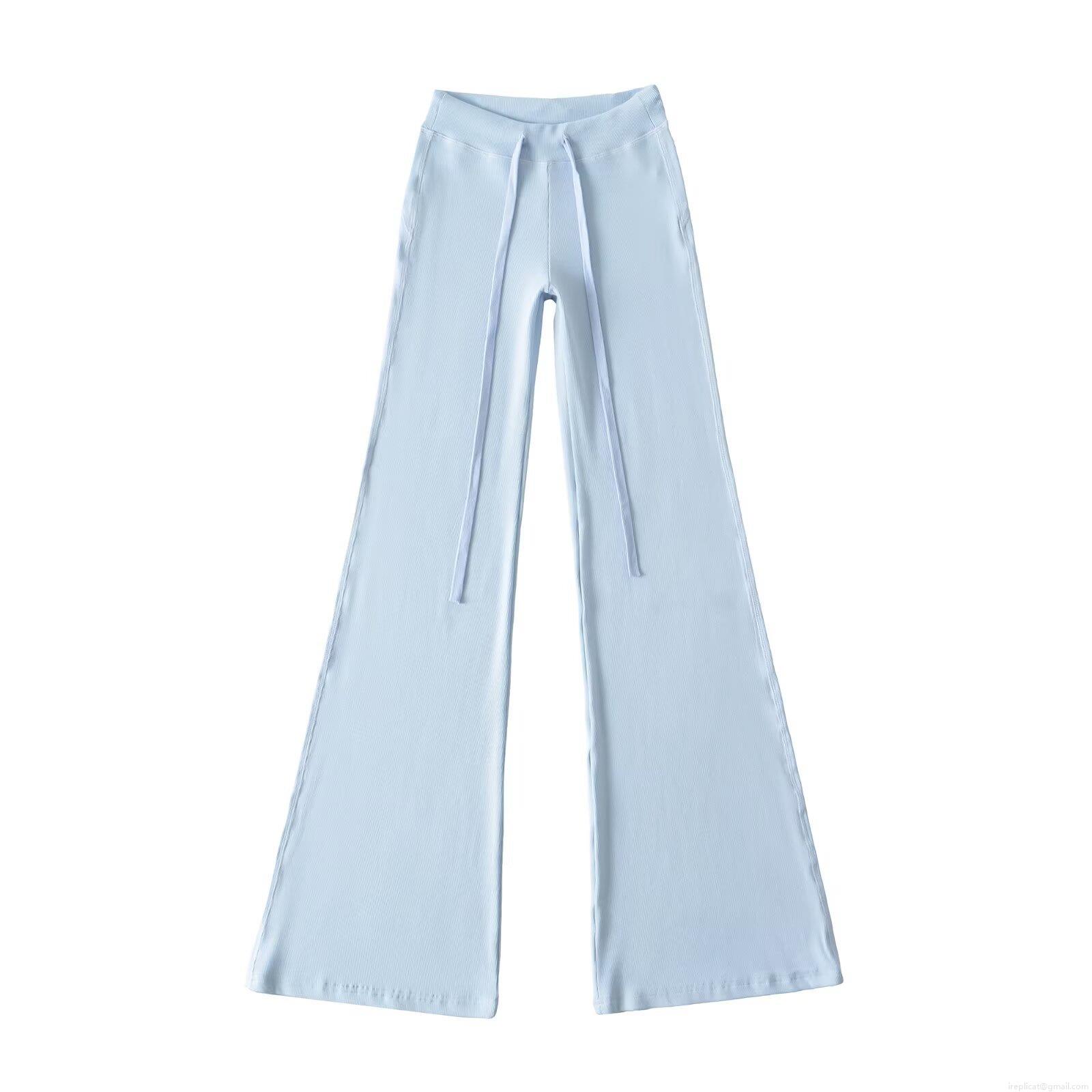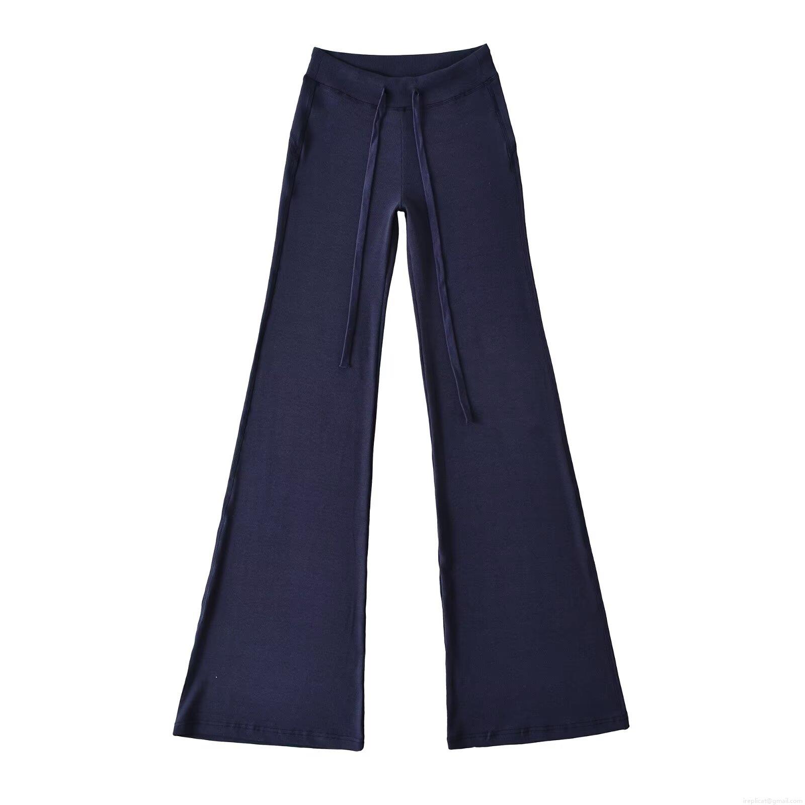 • Women Ribbed Knit Flare Pants Solid Color Drawstring Elastic Waist Casual Wide Leg Bell Bottom Trousers Autumn Streetwear Yoga Pants For Women
