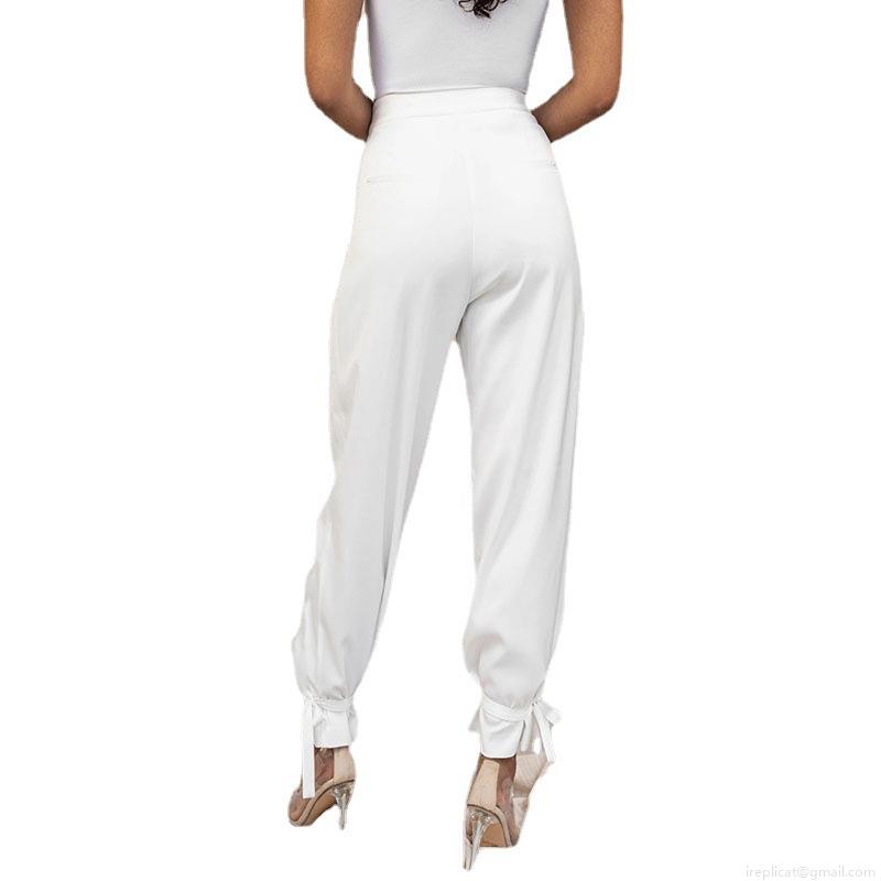 • Women Satin High Waist Tapered Pants Solid Color Loose Casual Trousers With Ankle Ribbon Ties Elegant Commuter Office Lady Long Pants