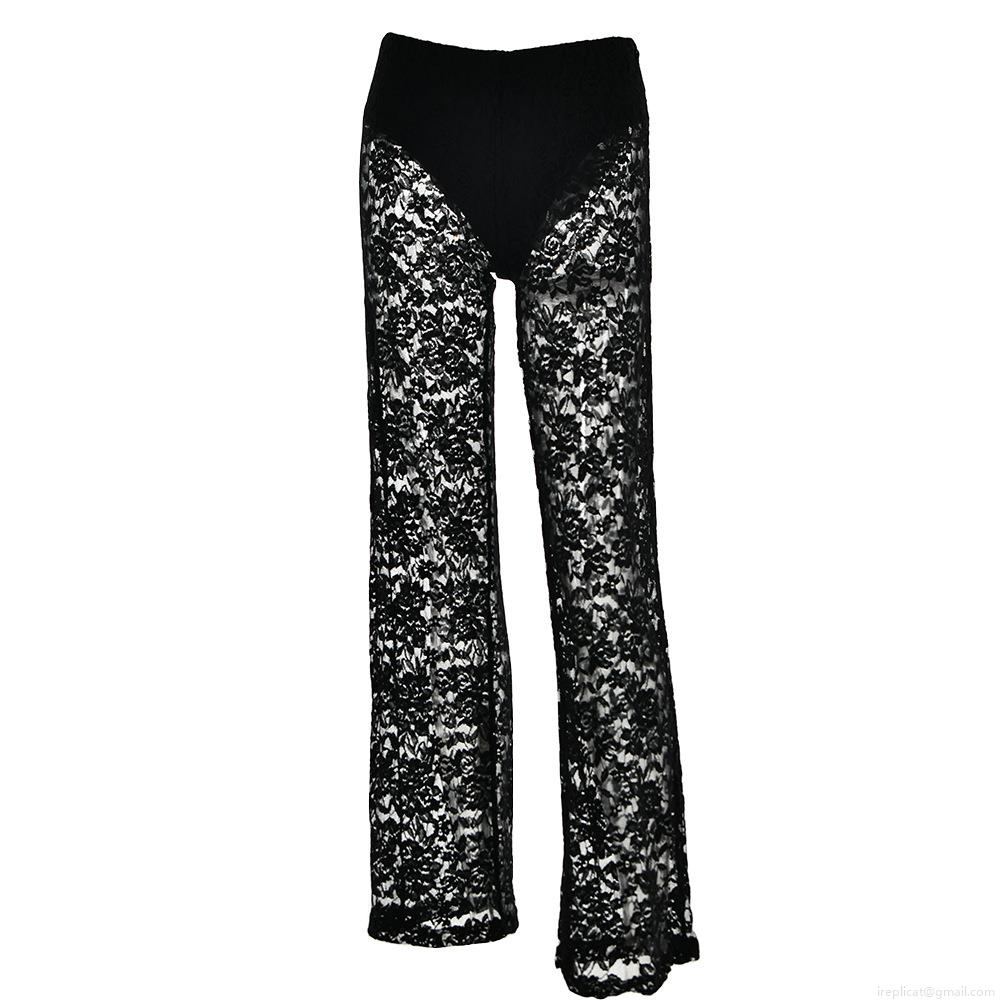 • Women Sexy Floral Lace See-Through High Waist Straight Leg Pants Elegant Hollow Out Mesh Long Trousers For Summer Party Clubwear Streetwear