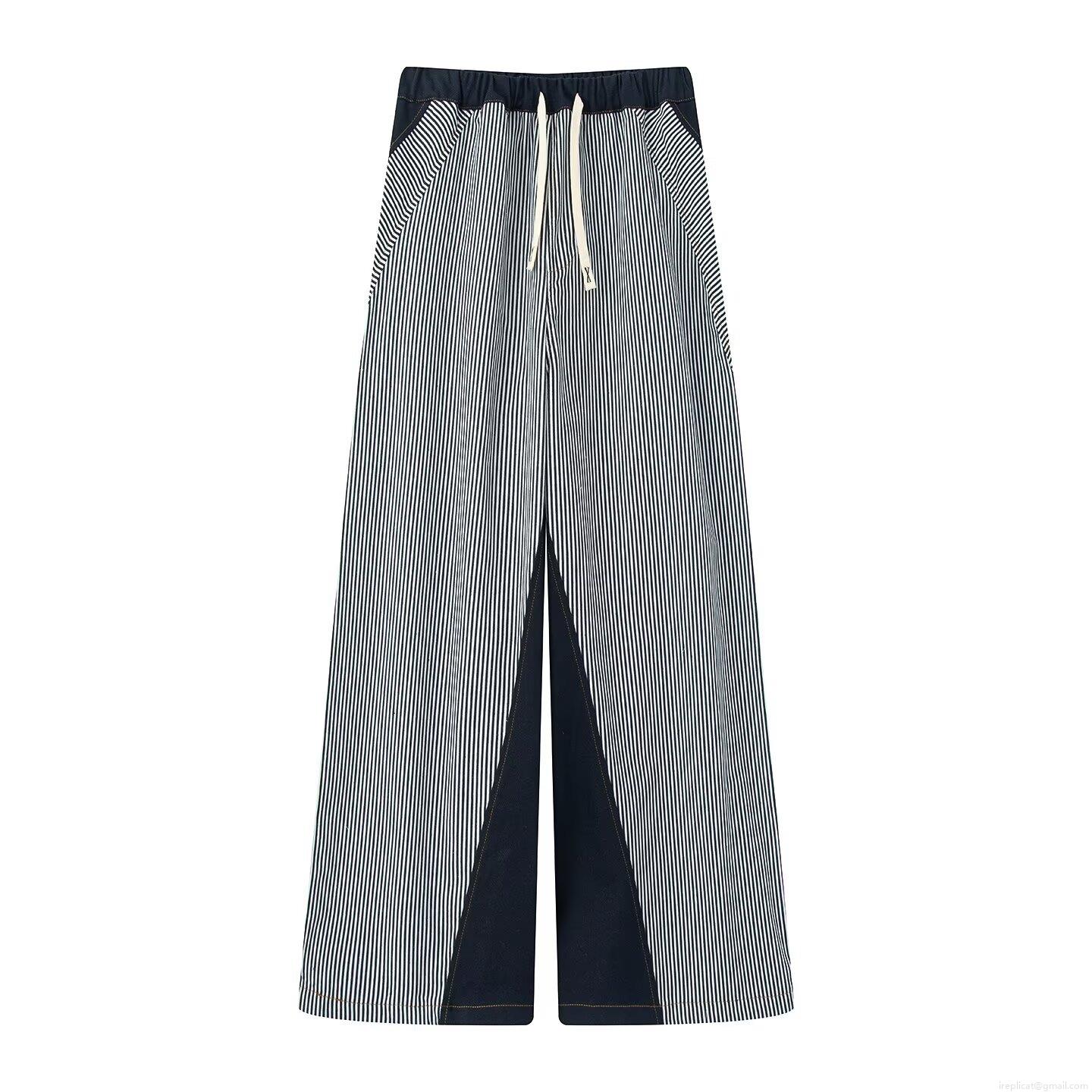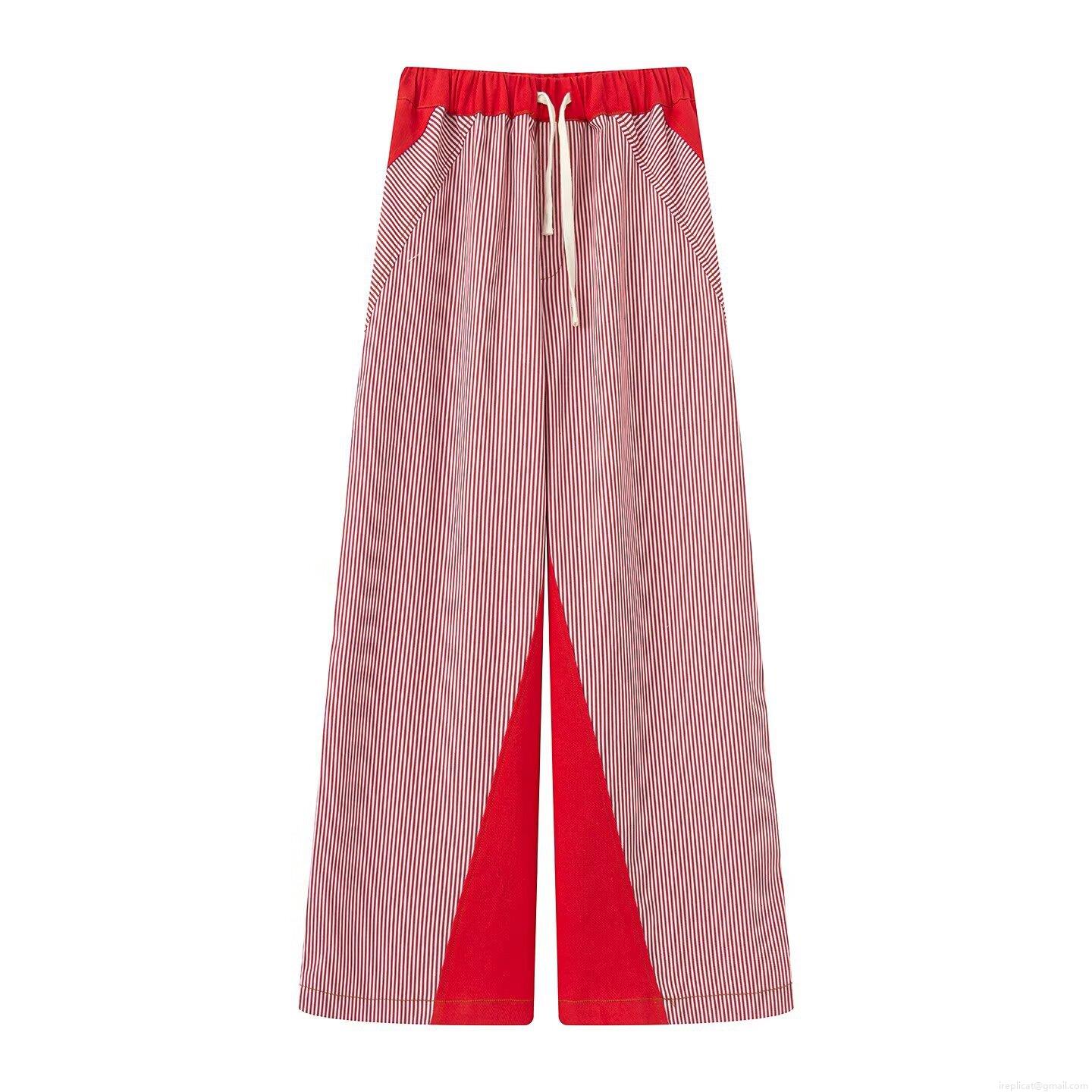 • Women Striped Patchwork Wide Leg Pants Summer Casual Loose Drawstring Elastic High Waist Trousers Streetwear Fashion Bottoms