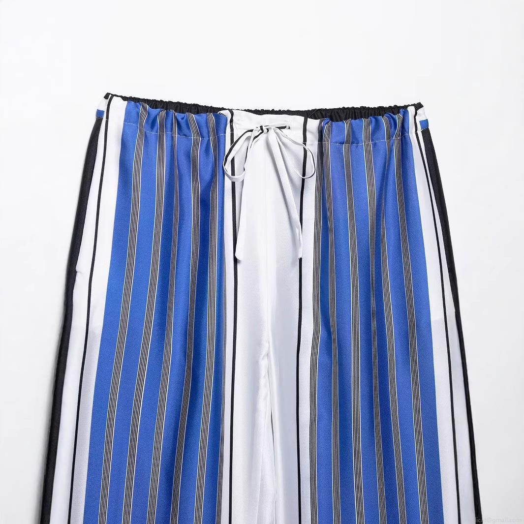 Stripe, Drawstring, Vertical Stripes, Lace, Wide-leg