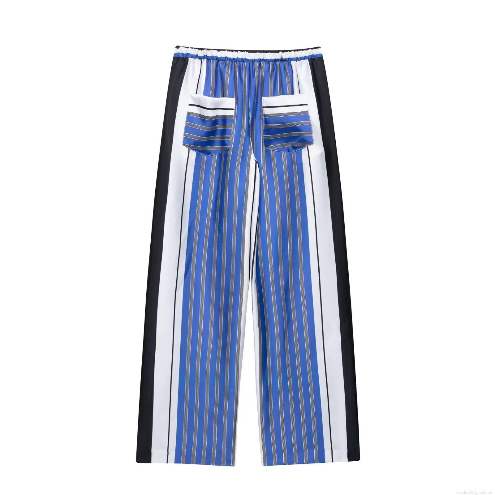 • Women Striped Wide Leg Pants 100% Polyester Drawstring High Waist Loose Casual Long Trousers Summer Beach Streetwear For Lady Comfortable Breathable Vertical Stripes Pant