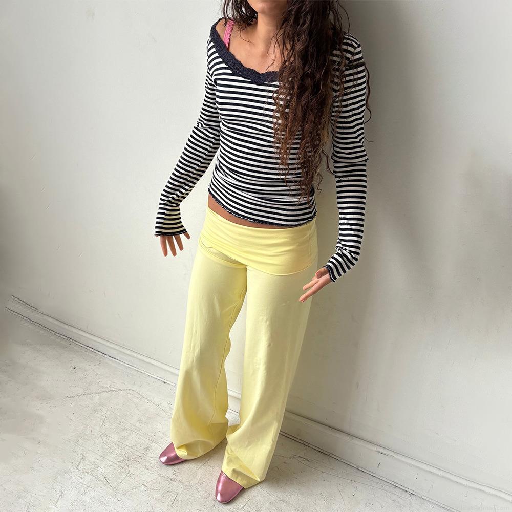 • Women Striped Wide Leg Pants Milk Silk Polyester Loose Casual High Waist Trousers Daily Home Loungewear Streetwear Fashion Female Bottoms