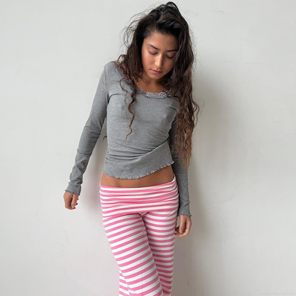 Women Striped Wide Leg Pants Milk Silk Polyester Loose Casual High Waist Trousers Daily Home Loungewear Streetwear Fashion Female Bottoms