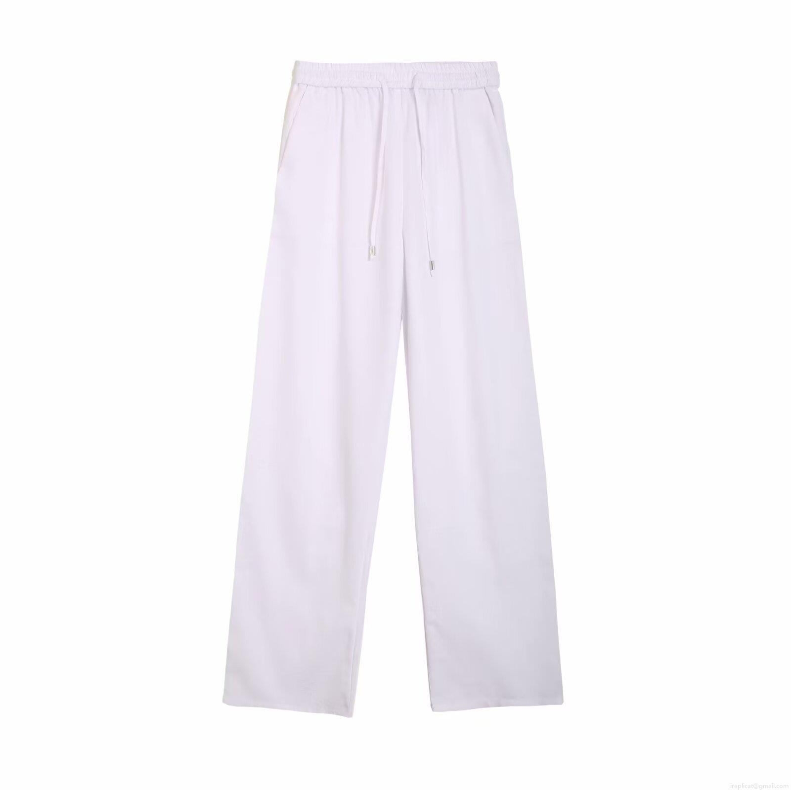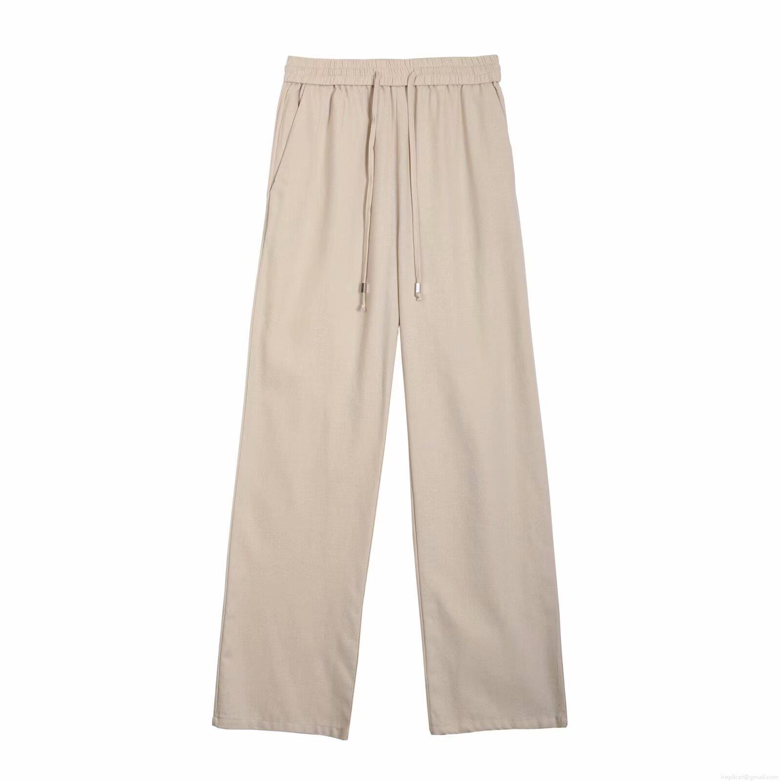 • Women Summer Wide Leg Casual Pants Polyester Blend Cotton Linen Texture Elastic Waist Drawstring Streetwear Chic Straight Leg Trousers For Daily Wear