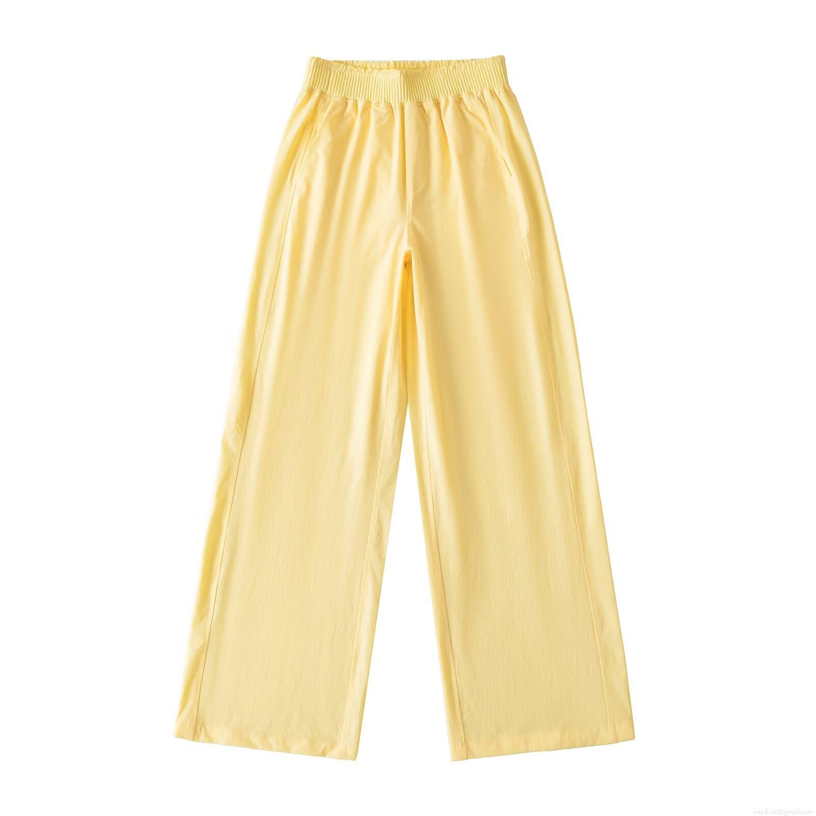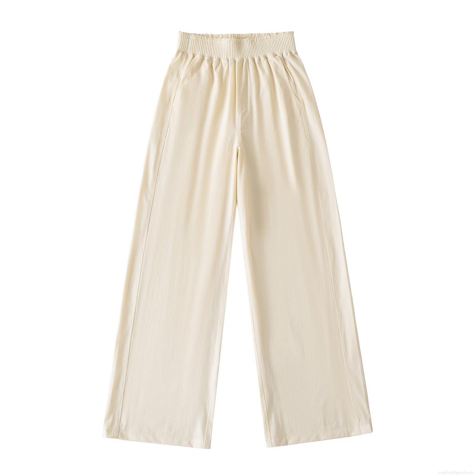 Women Summer Wide Leg Pants Solid Color High Waist Elastic Loose Polyester Casual Trousers Streetwear For Daily Wear Women Trousers