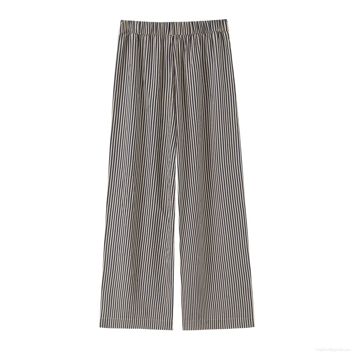 • Women Vertical Striped Wide Leg Pants High Waist Elastic Waist Polyester Loose Trousers Fashion Casual Lounge Pants For Ladies Daily Beach Wear