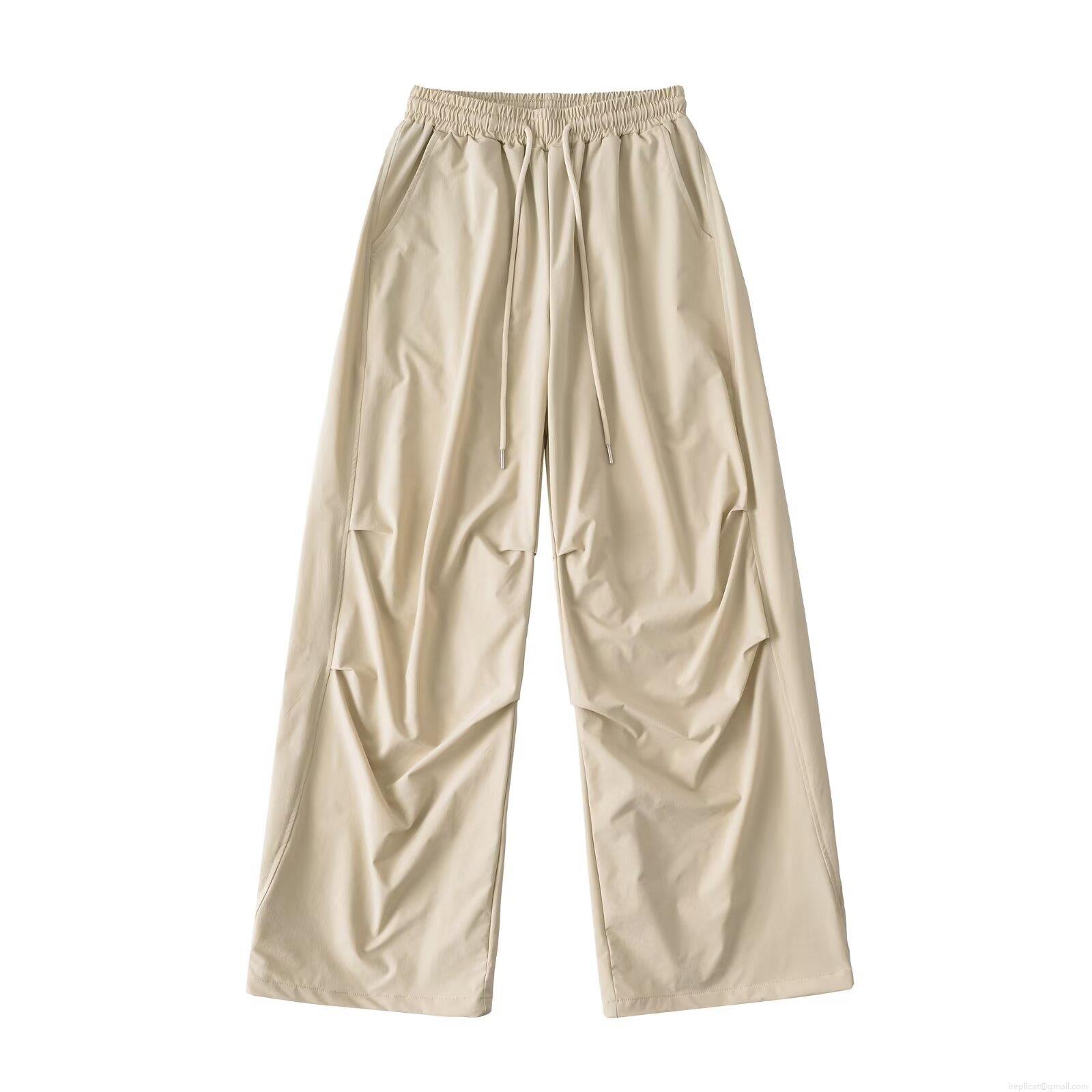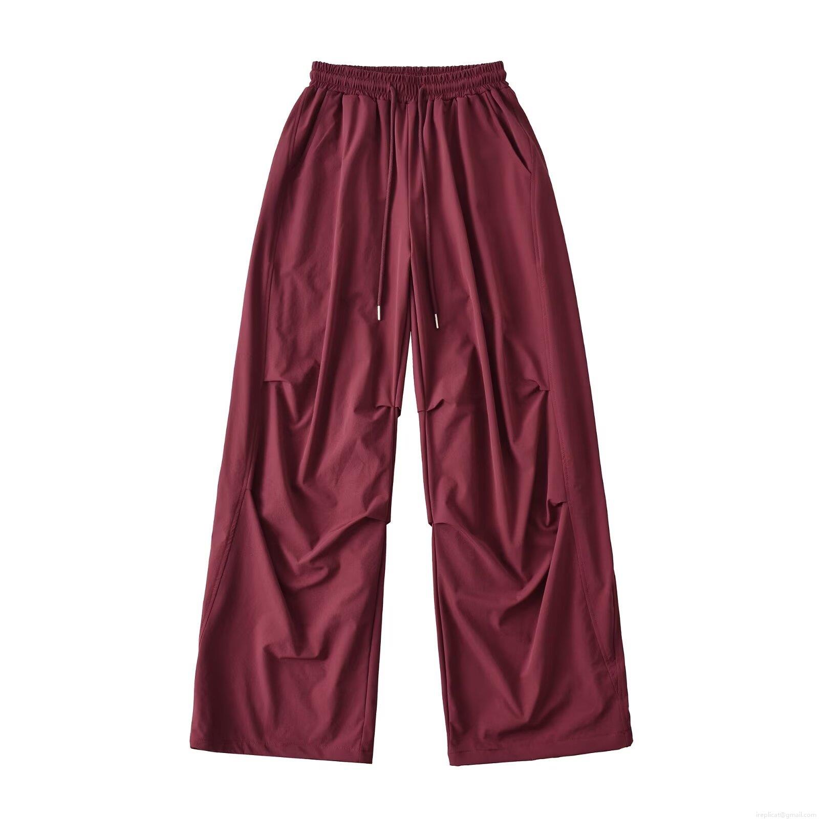 • Women Wide Leg Casual Pants Polyester Drawstring Elastic Waist Trousers For Summer Vacation Streetwear Street Style Loose Fit Solid Color Bottoms