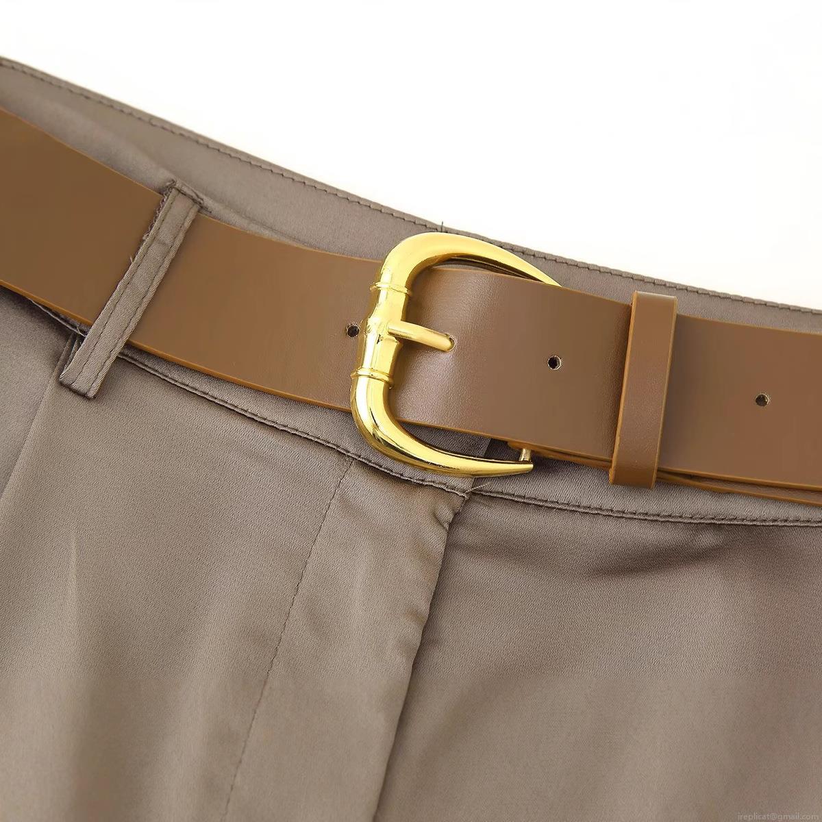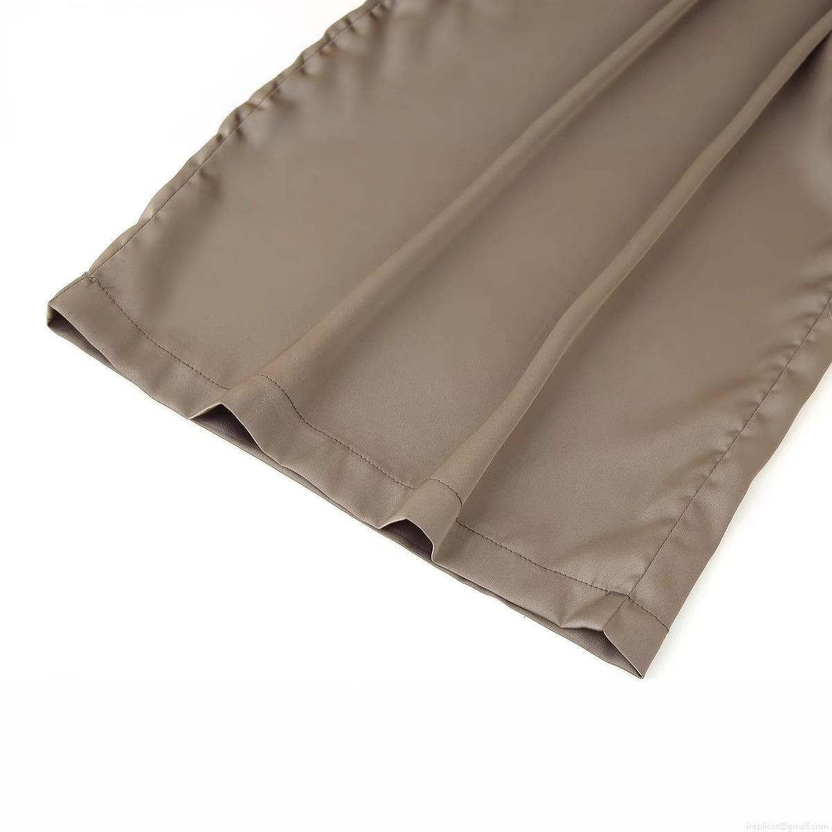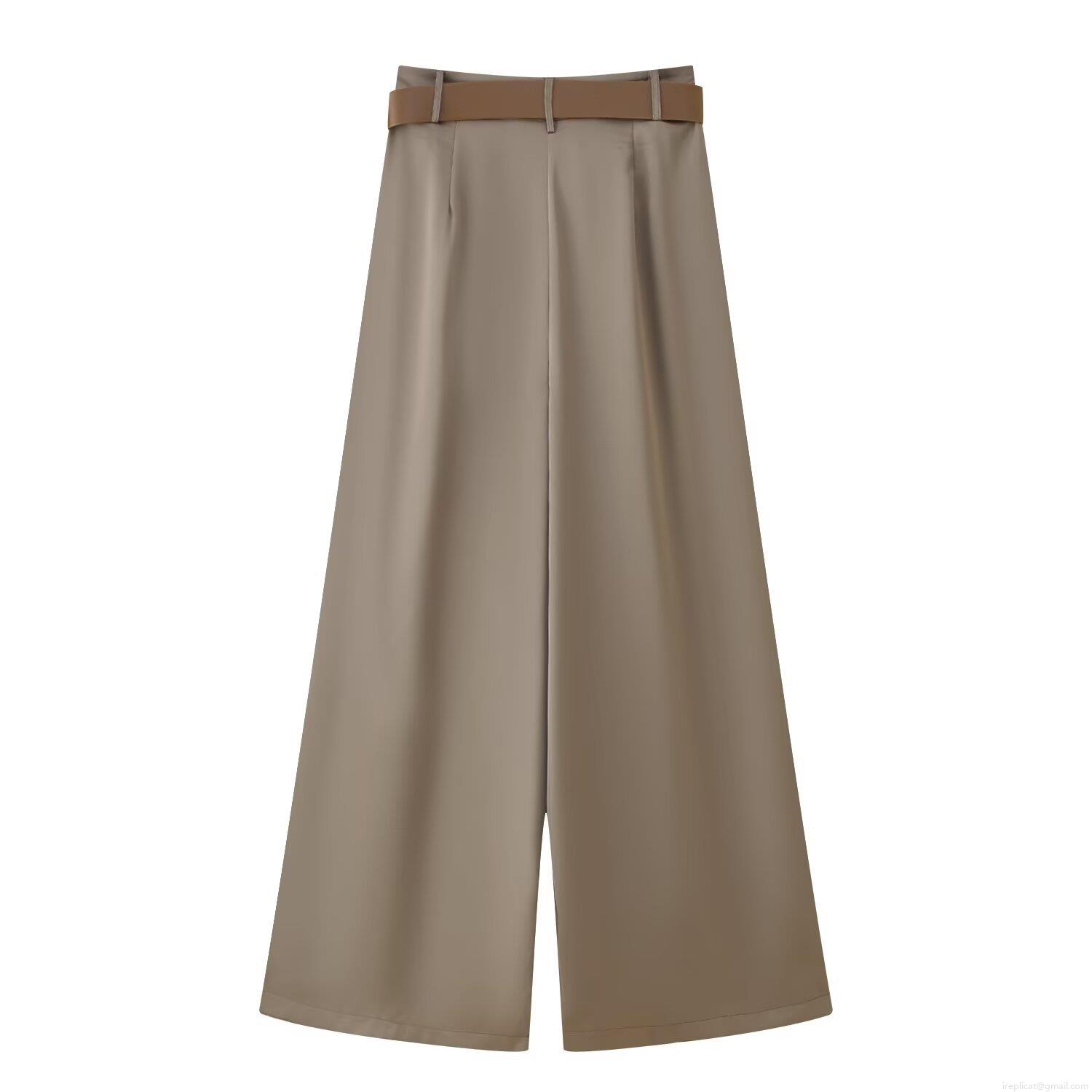 • Women Wide Leg Casual Pants With Belt Satin Texture High Waist Pleated Straight Trousers For Office Daily Lady Streetwear Elegant Khaki Long Pants