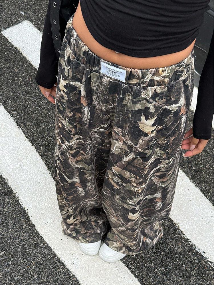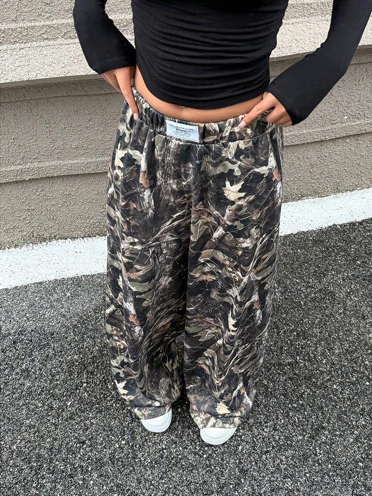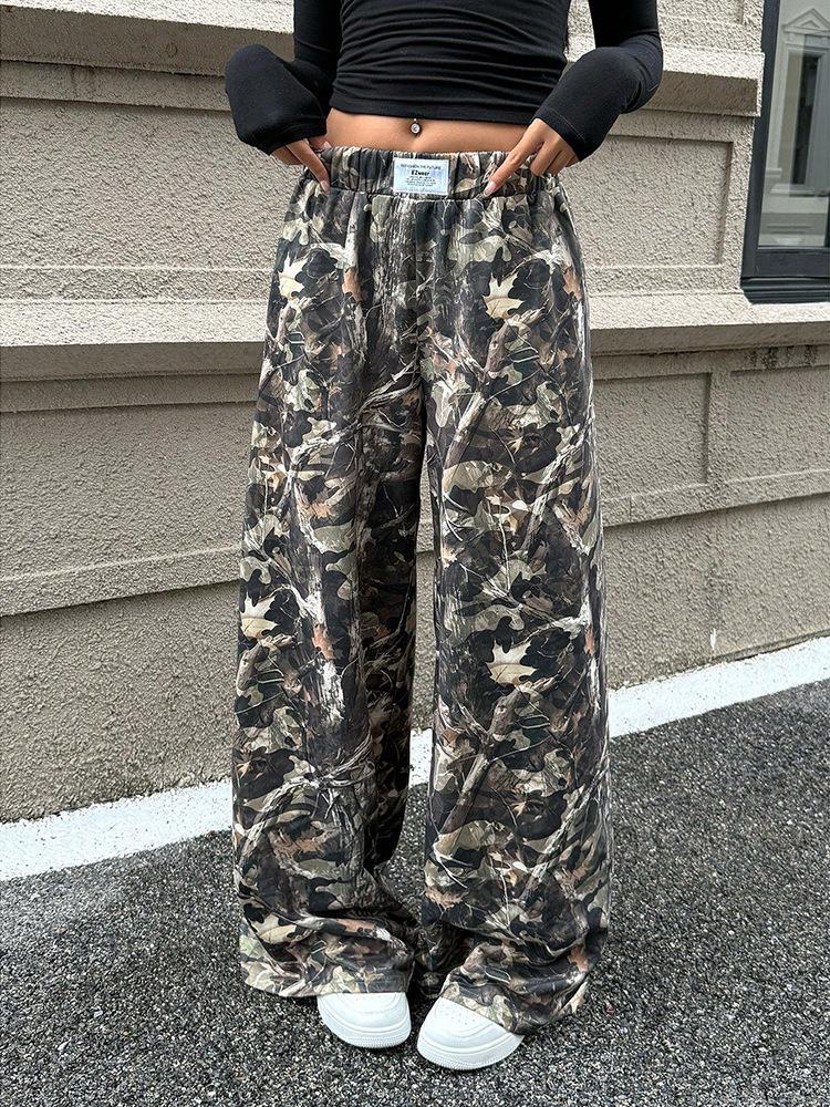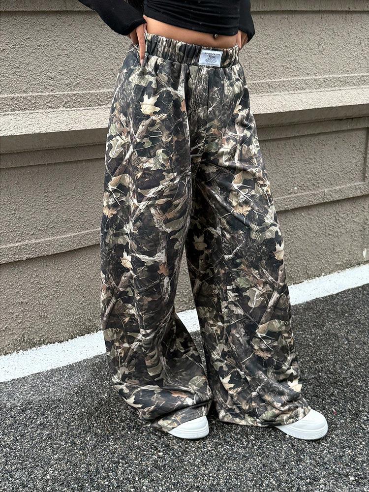 • Women's American Retro Branch Print Cargo Pants Wide Leg Casual Trousers Loose Fit High Waist Streetwear Straight Leg Pants Cotton Blend Camouflage Sweatpants for Spring Autumn