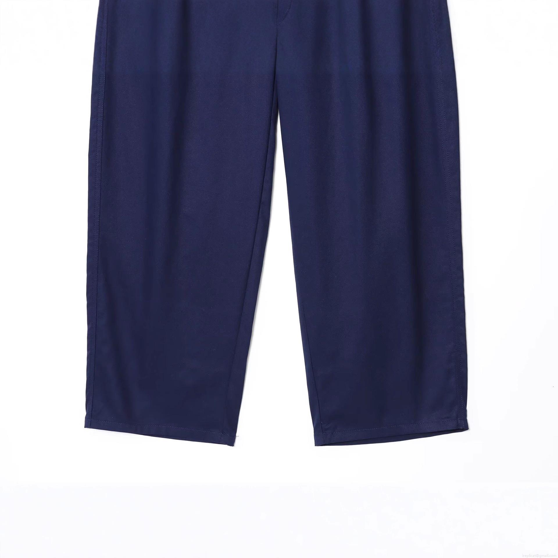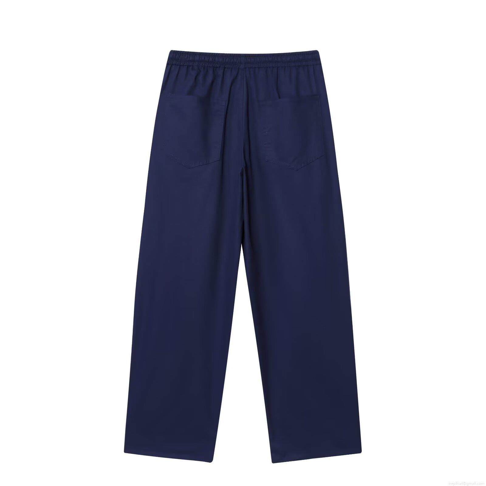 Women's Autumn Casual Straight Leg Pants Elastic Waist Drawstring Navy Blue Streetwear Polyester Trousers With Pockets