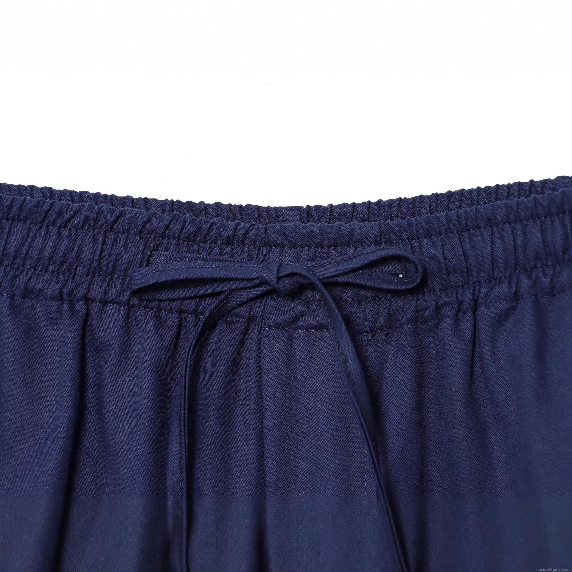 • Women's Autumn Casual Straight Leg Pants Elastic Waist Drawstring Navy Blue Streetwear Polyester Trousers With Pockets