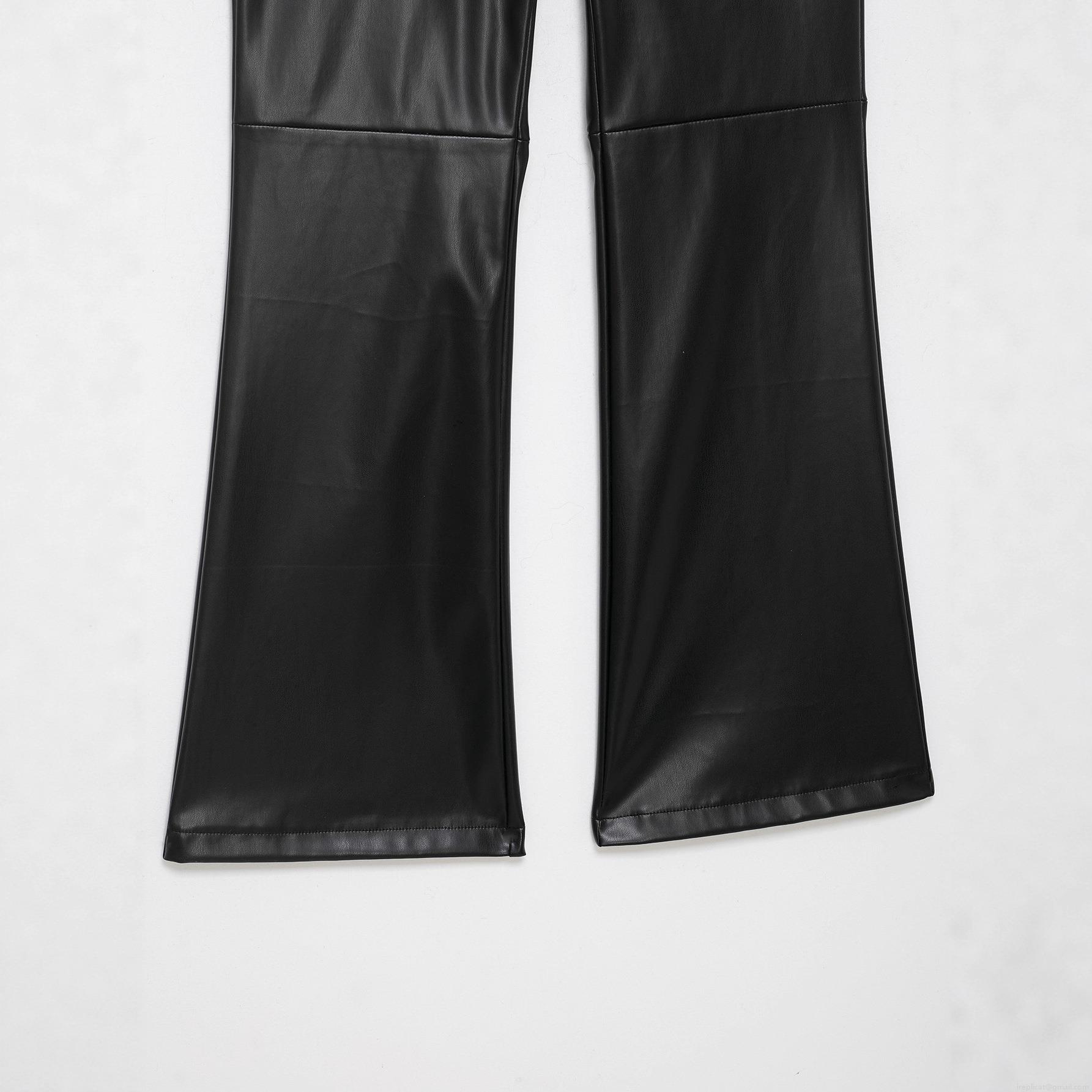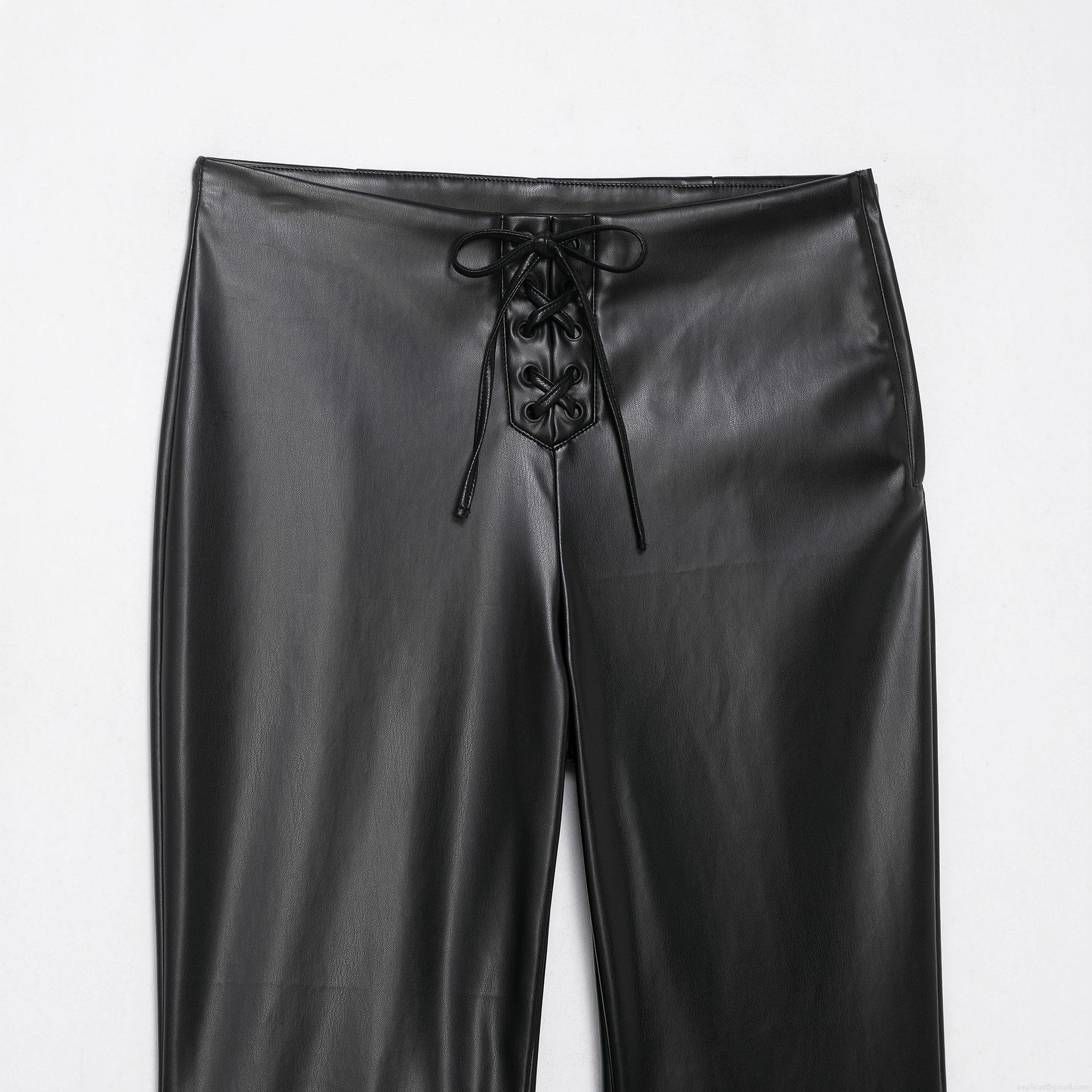 • Women's Black PU Leather Flare Pants Fashion Mid Waist Criss Cross Lace Up Trousers Sexy Slim Fit Streetwear Faux Leather Leggings