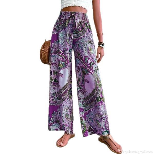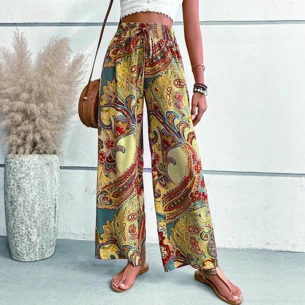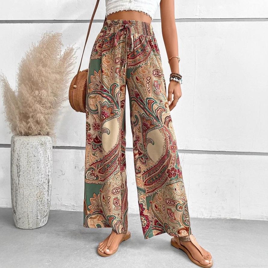 • Women's Bohemian Paisley Print Wide Leg Pants Polyester High Waist Drawstring Loose Trousers Vacation Style Casual Flowy Palazzo Pants for Women