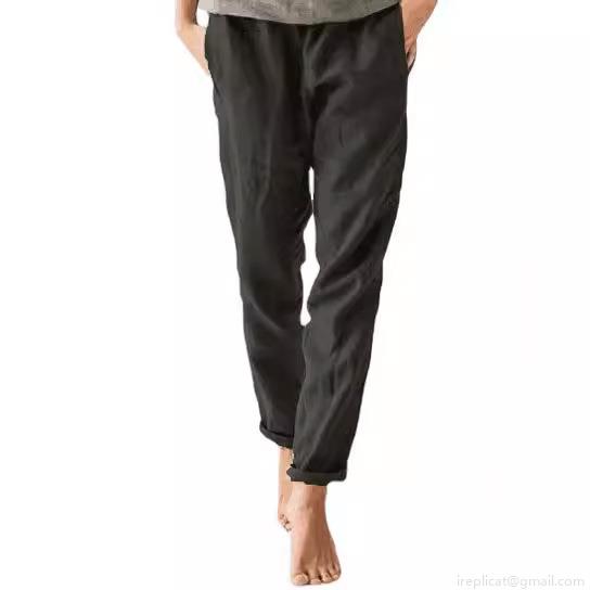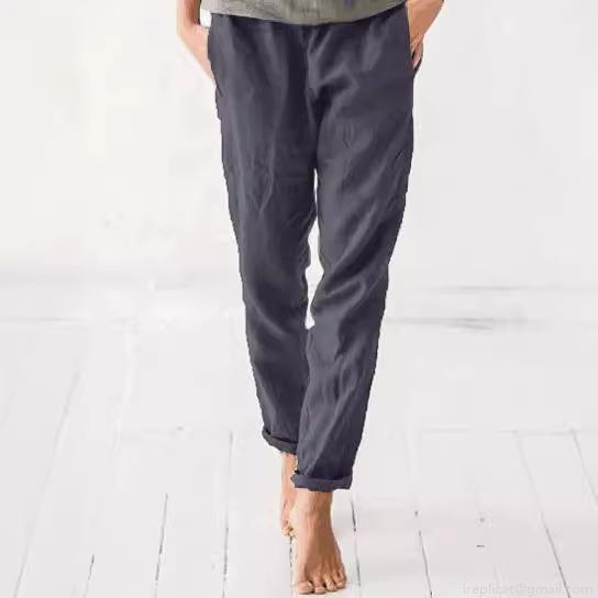 • Women's Casual Cotton Linen Straight Leg Trousers Elastic Waist Drawstring Solid Color Loose Full Length Pants For Daily Streetwear