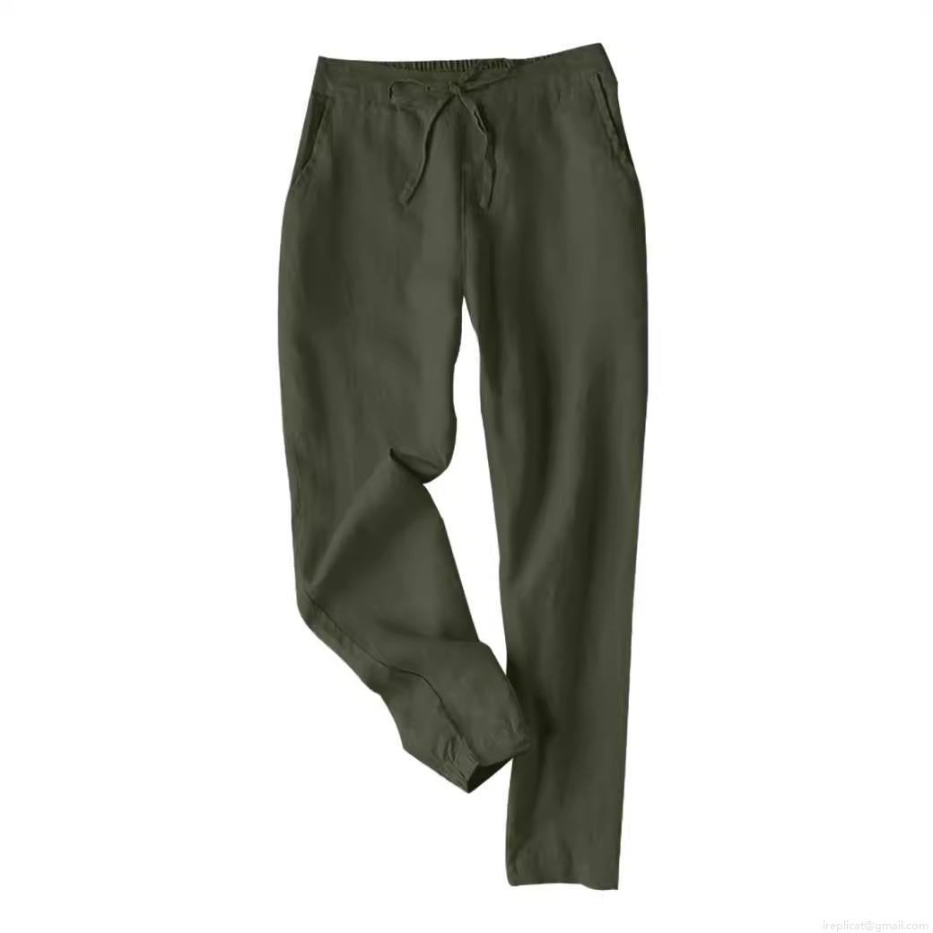 • Women's Casual Cotton Linen Trousers Elastic Waist Drawstring Pockets Cuffed Jogger Pants Solid Color Relaxed Fit Bottoms For Daily Wear