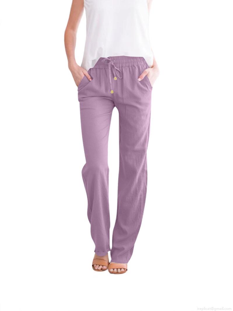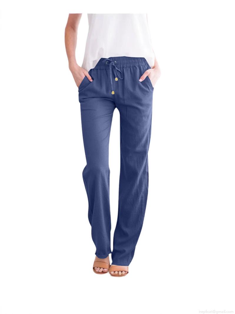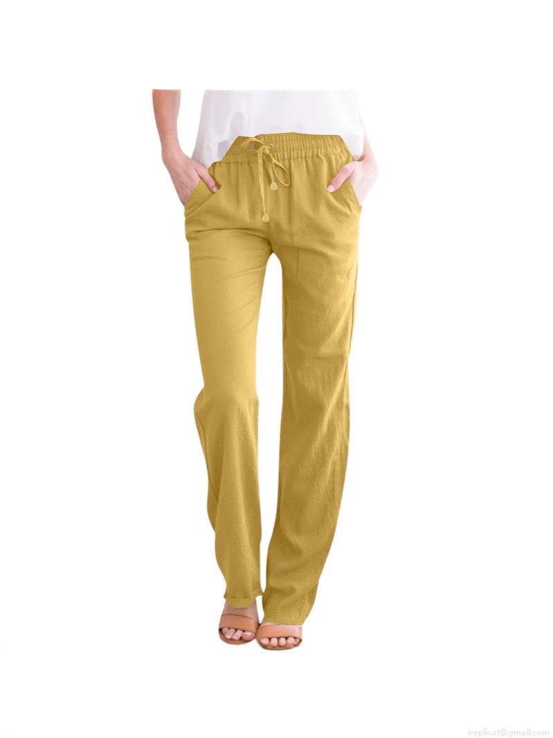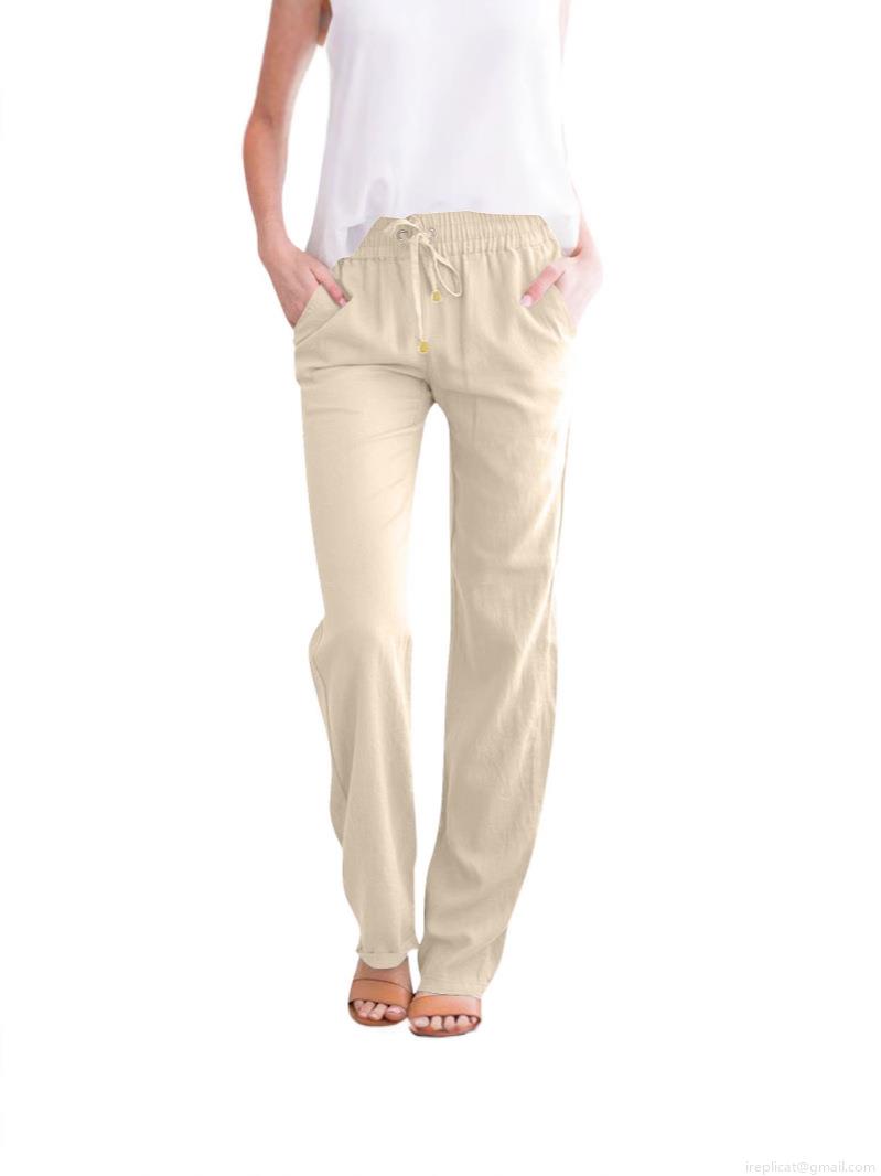 • Women's Casual Cotton Linen Wide Leg Pants High Waist Drawstring Loose Fit Solid Color Long Trousers With Pockets For Spring Summer Autumn Ladies Comfortable Loungewear