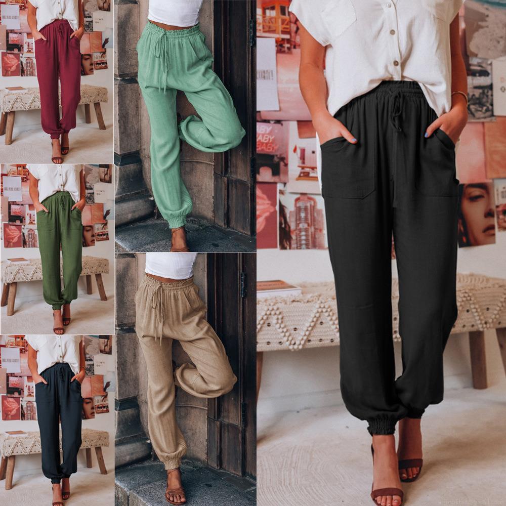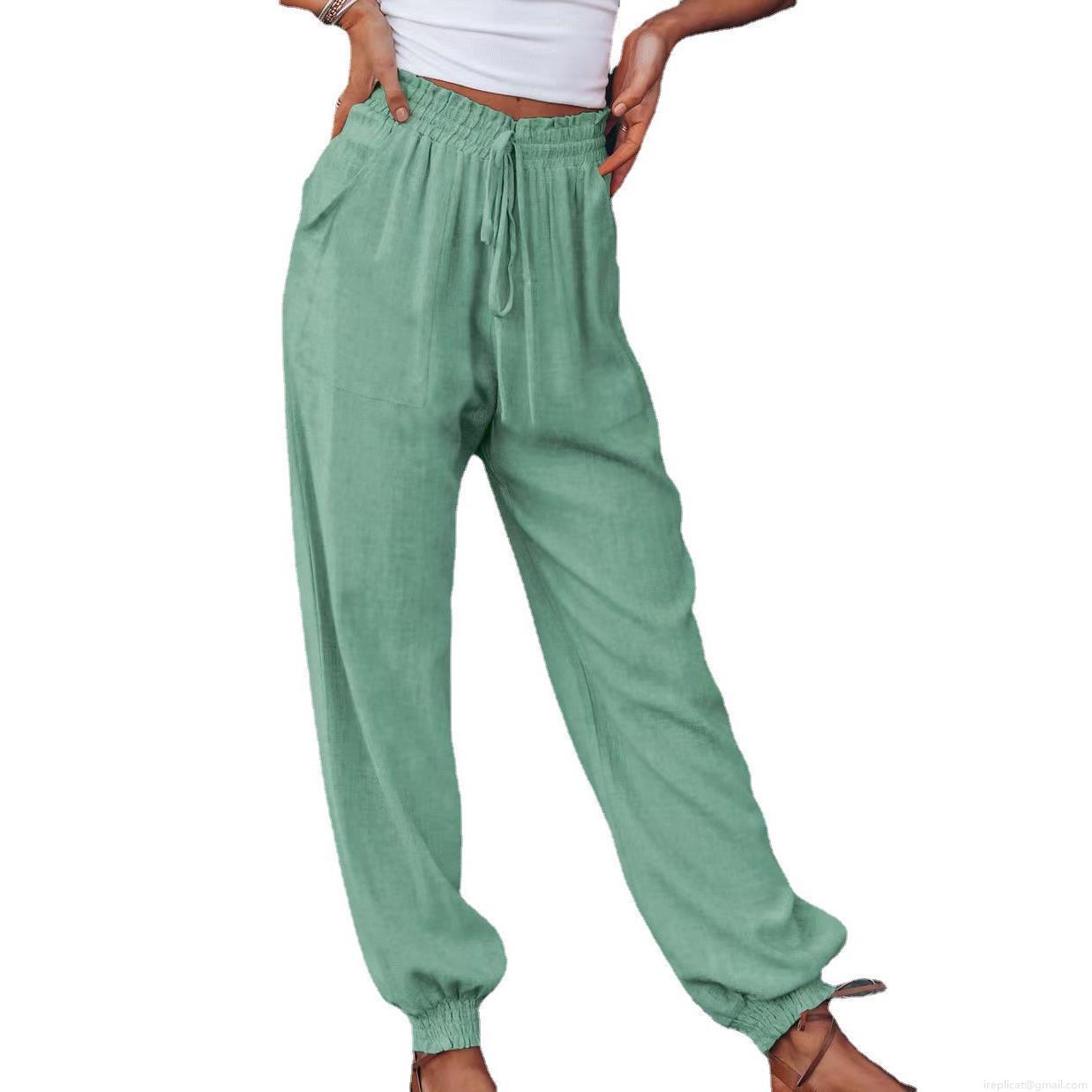 • Women's Casual Harem Pants High Waisted Rayon Cotton Blend Trousers With Drawstring Elastic Waist Tapered Joggers Solid Color Pocket Pants For Ladies Summer Travel
