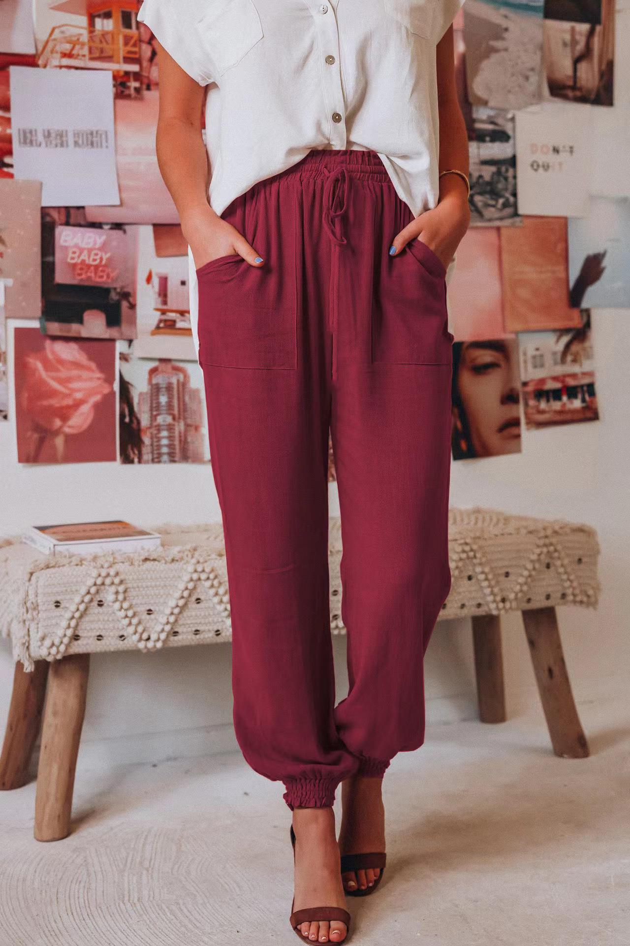 Solid Color, Drawstring, Elastic Waistband, Big Pocket, Foot Binding