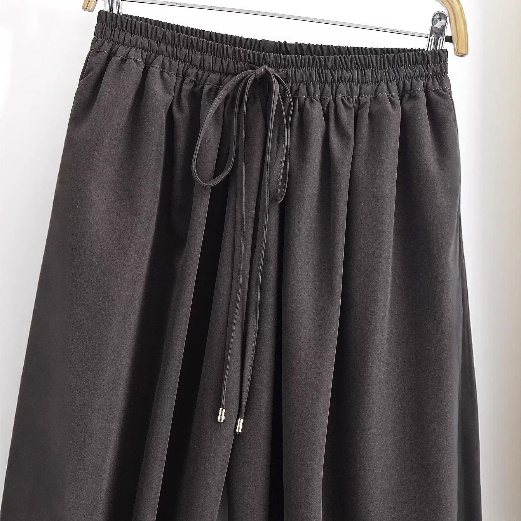 Women's Casual High Waist Lantern Pants 100% Polyester Loose Fit Bow Tie Ankle Cuffed Trousers With Drawstring Streetwear Lady