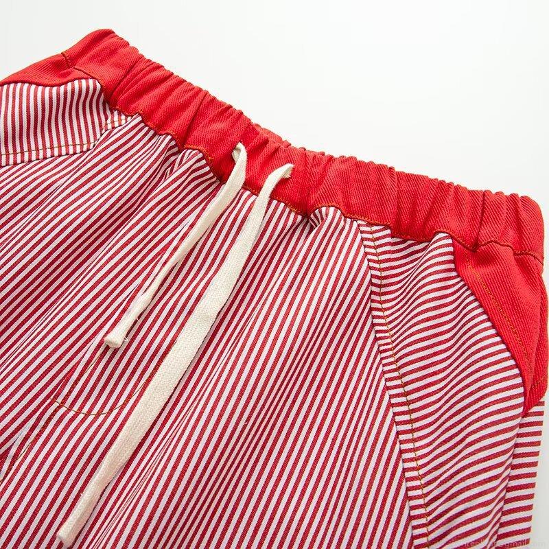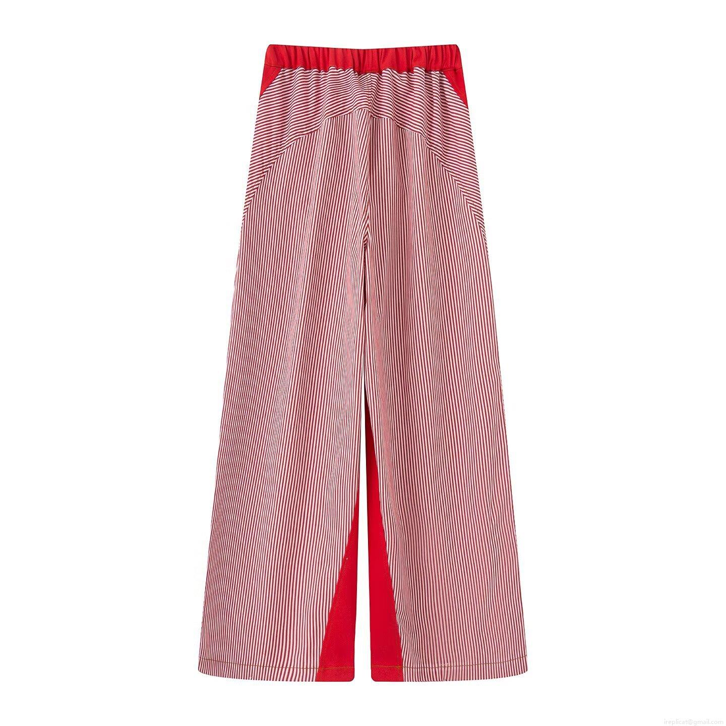 • Women's Casual High Waist Wide Leg Striped Pants Fashion Loose Fit Straight Leg Trousers With Drawstring Patchwork Design Striped Bottoms 2025 Summer