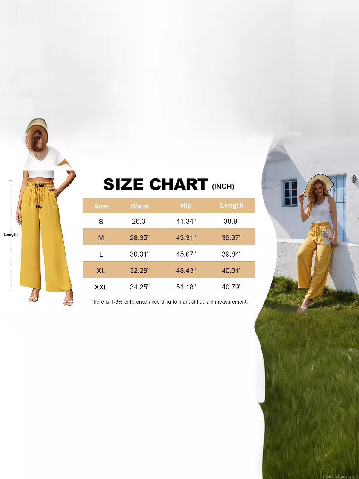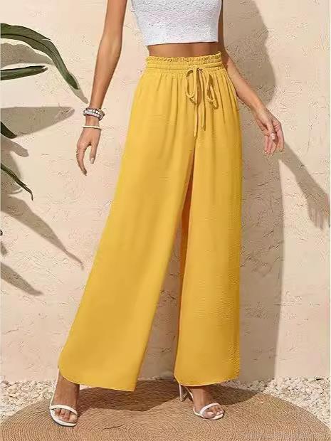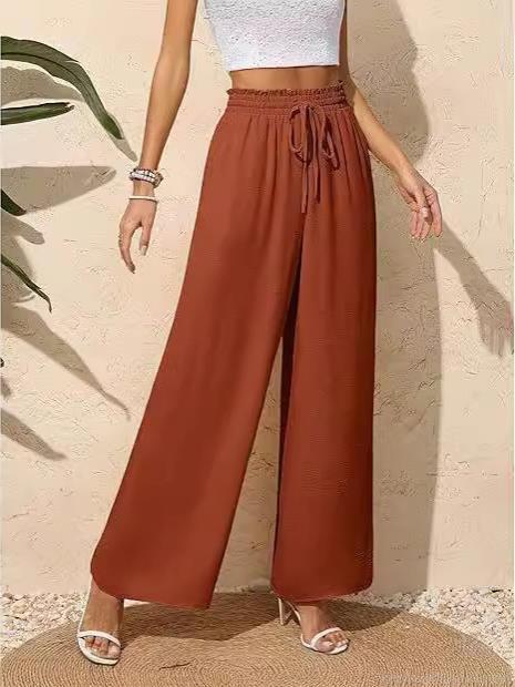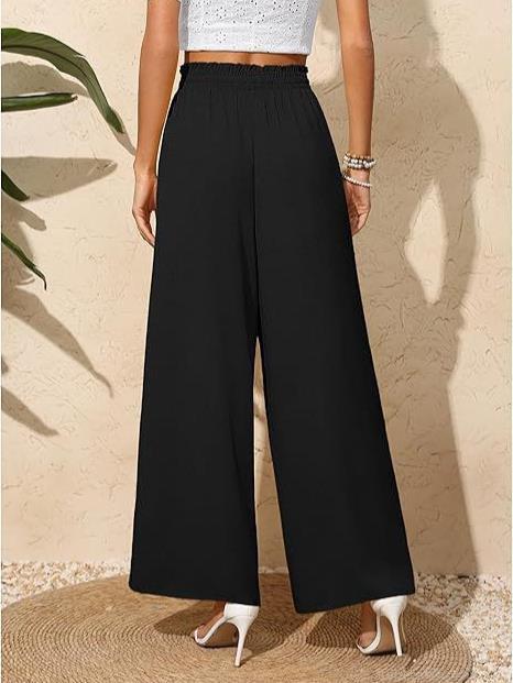 • Women's Casual High Waisted Wide Leg Pants Flowy Smocked Drawstring Lounge Trousers With Pockets Polyester Spandex Crepe Texture Pants