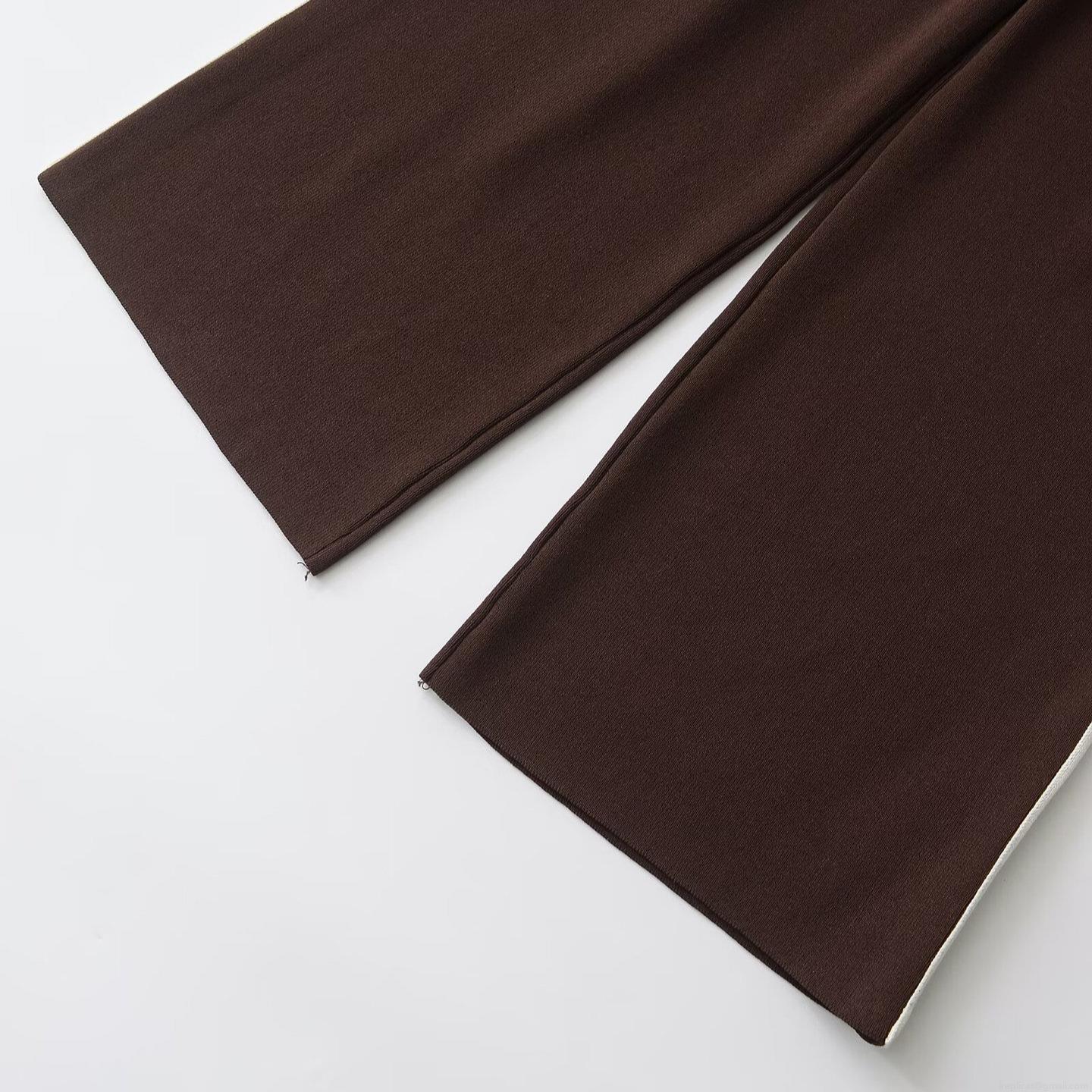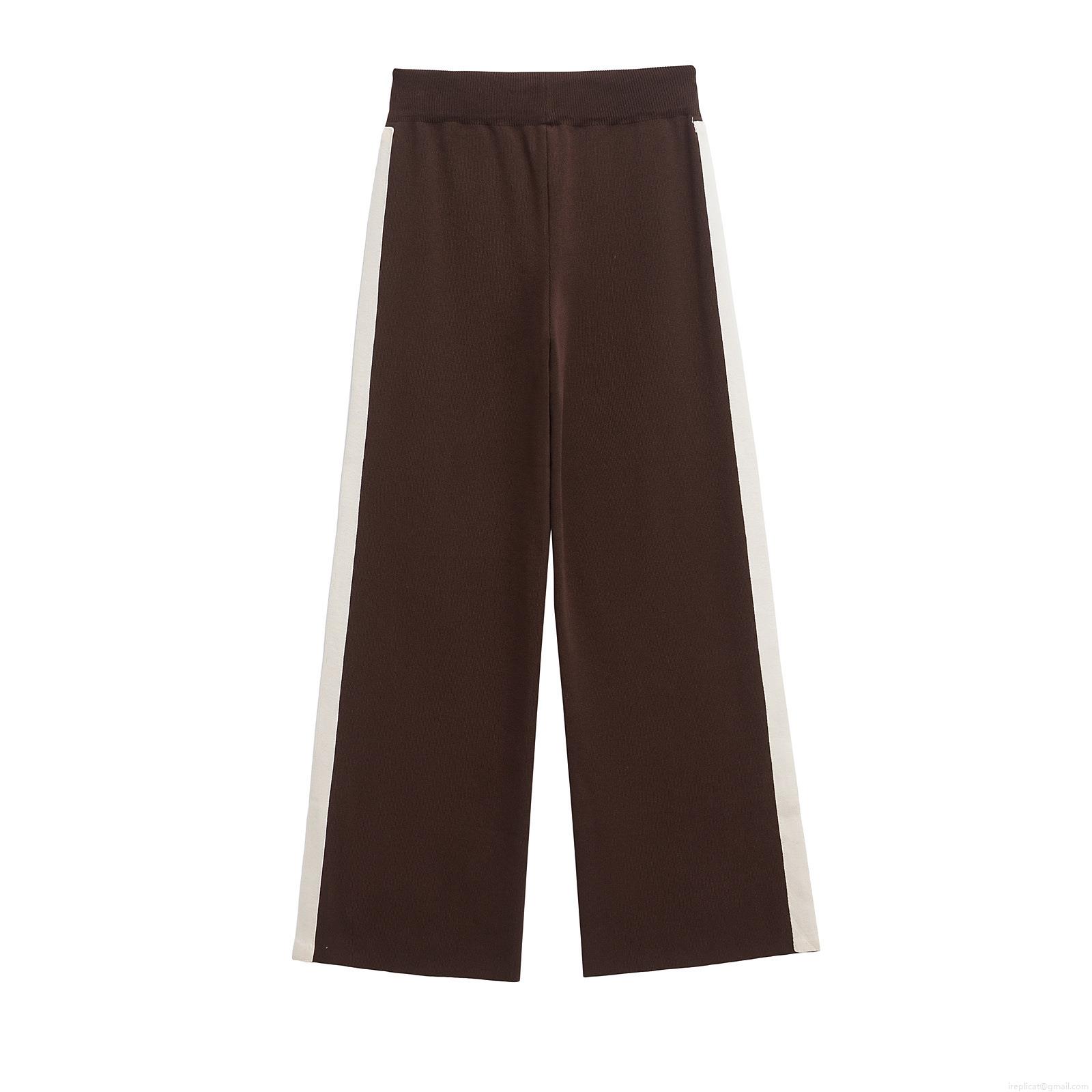 • Women's Casual Knitted Wide Leg Pants Contrast Side Stripes Drawstring Elastic High Waist Straight Trousers Minimalist Fashion Long Sweatpants For Spring Daily Wear