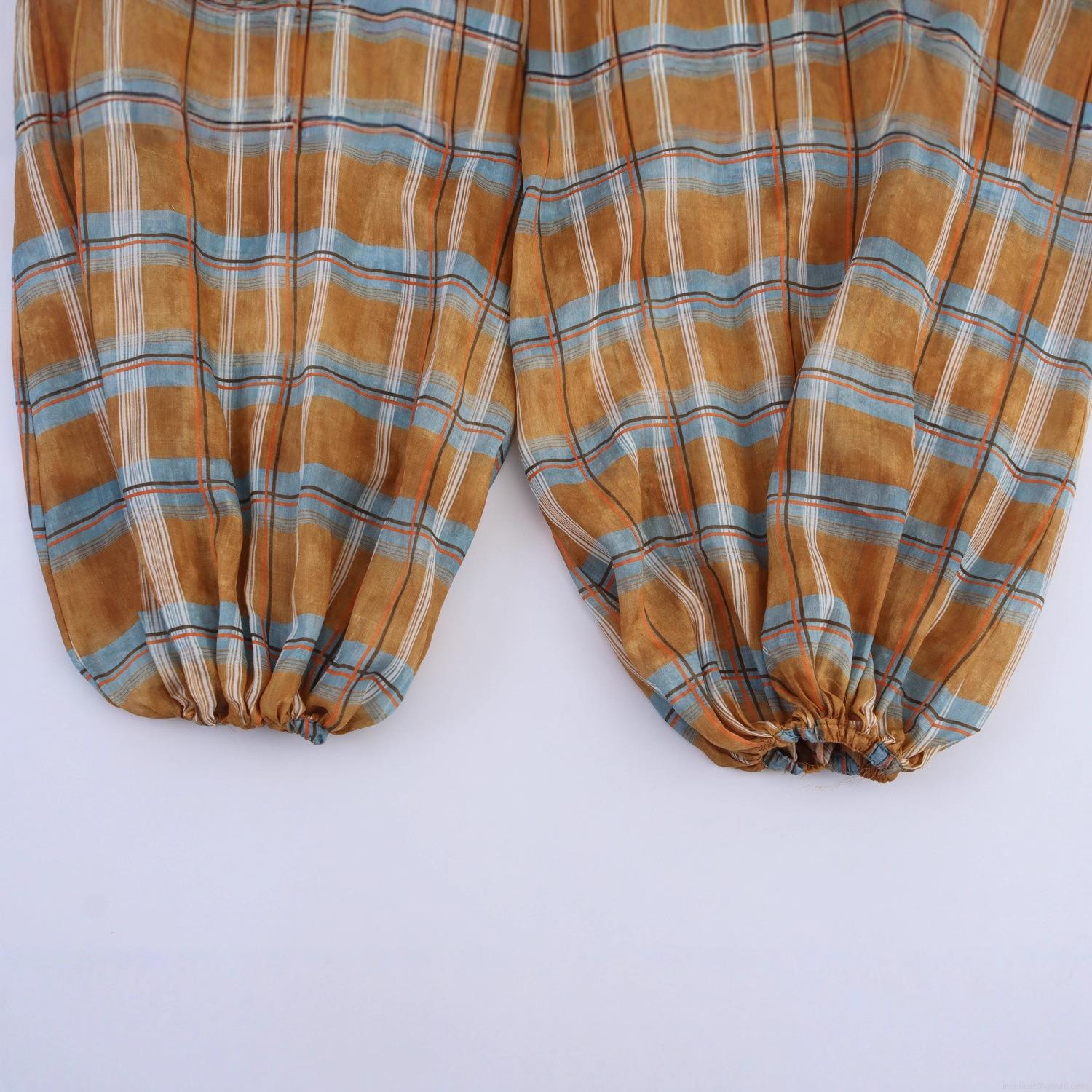 • Women's Casual Plaid Lantern Pants High Waist Drawstring Tapered Trousers Polyester Ramie Blend Loose Fitting Checkered Harem Pants For Daily Travel Spring Summer Fashion Clothing