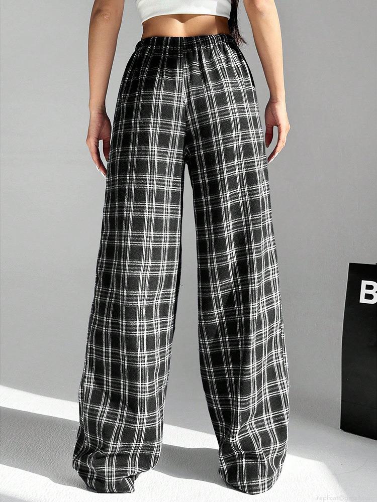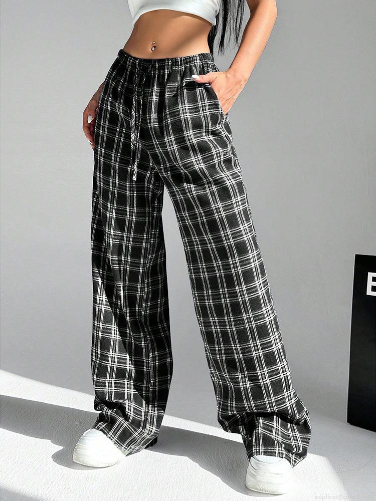 • Women's Casual Plaid Wide Leg Pants High Waist Drawstring Loose Trousers Streetwear Leopard Print Straight Cargo Pants for Women Daily Wear