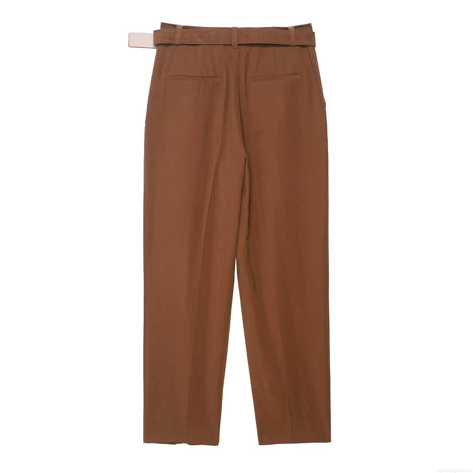 • Women's Casual Straight Leg Pants 100% Polyester High Waisted Trousers With Belt Solid Color Office Commute Streetwear Fall Fashion For Women