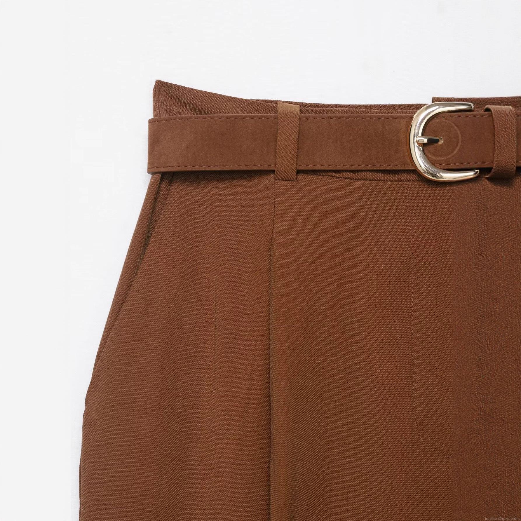 Solid Color, Splicing Design, Metal Buckle Belt, High-waisted Pleats