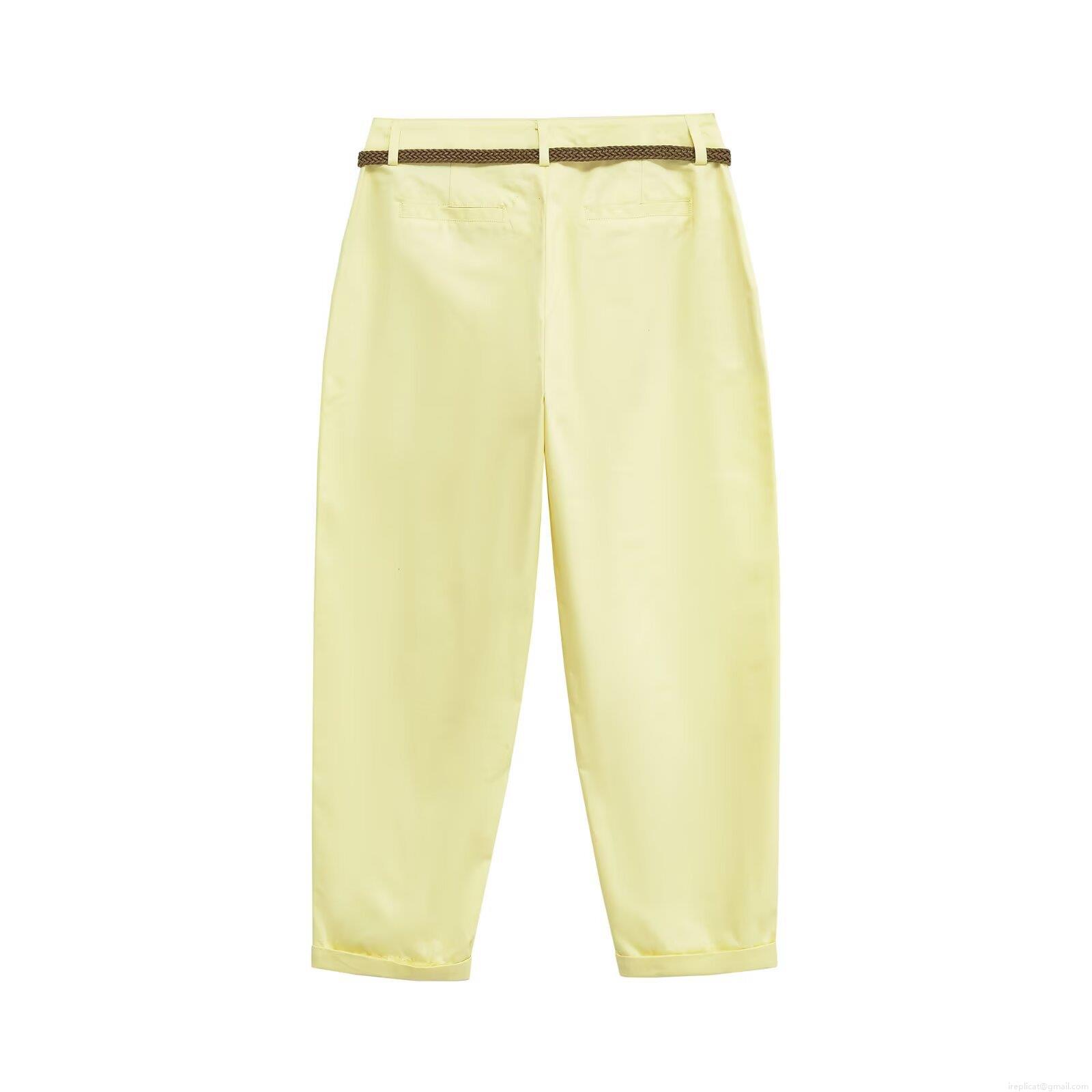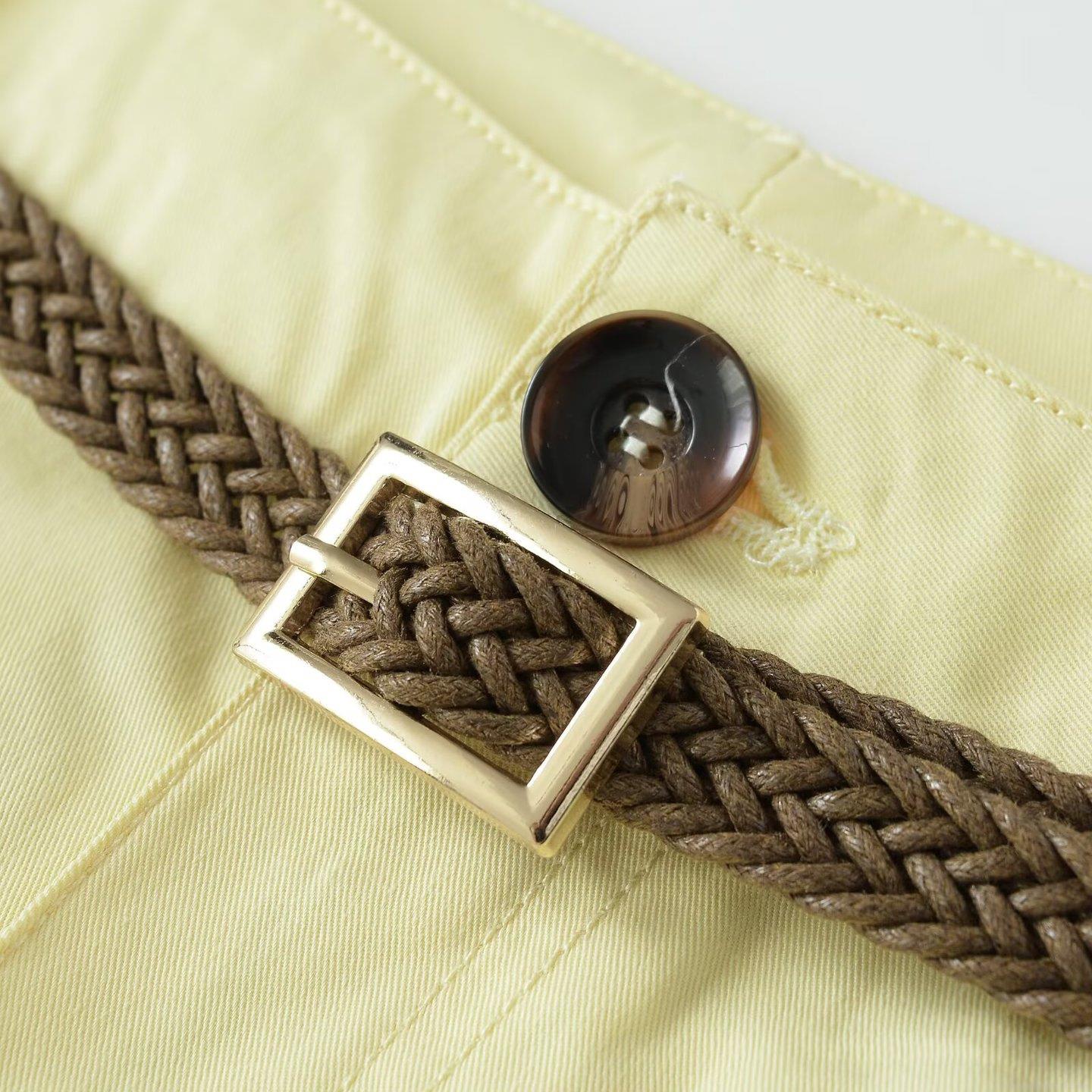 • Women's Casual Straight Leg Pants With Braided Belt Solid Color Mid Waist Trousers Fashion Streetwear Polyester Long Pants For Women