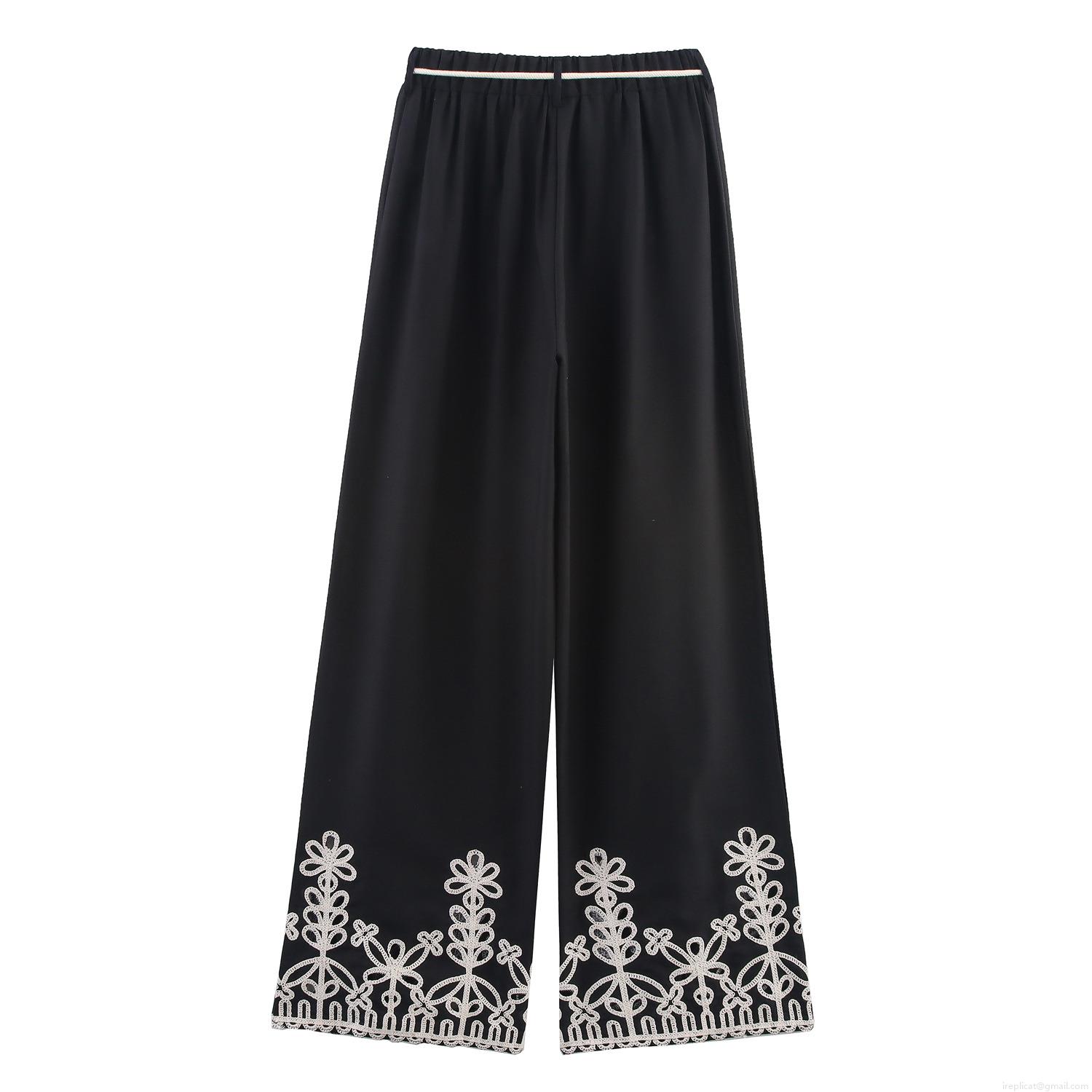 • Women's Casual Straight Leg Pants With Hollow Out Embroidery Bohemian Holiday Style Wide Leg Trousers With Elastic Waist Drawstring Wooden Beads Tassels For Summer Vacation