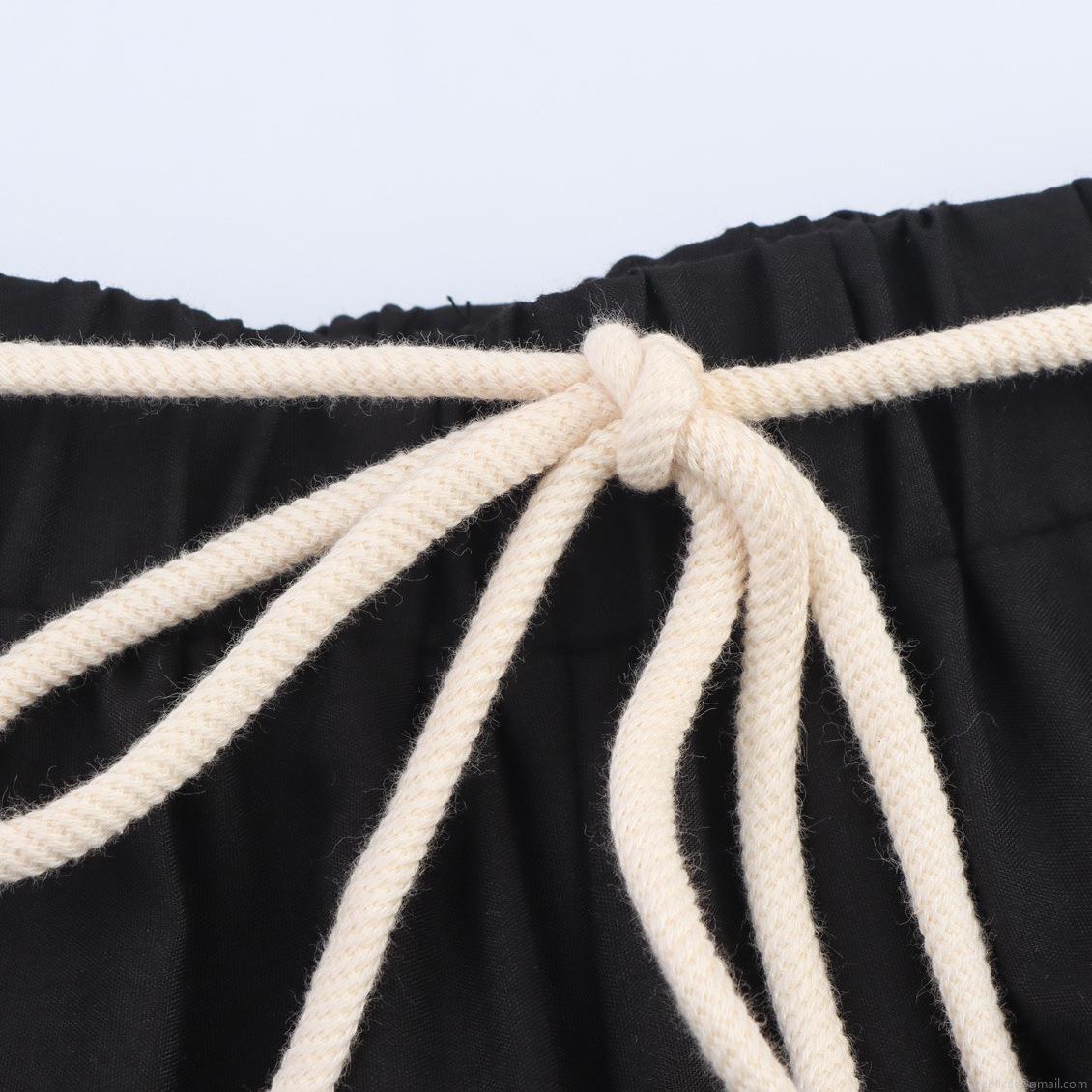 Women's Casual Straight Leg Pants With Hollow Out Embroidery Bohemian Holiday Style Wide Leg Trousers With Elastic Waist Drawstring Wooden Beads Tassels For Summer Vacation