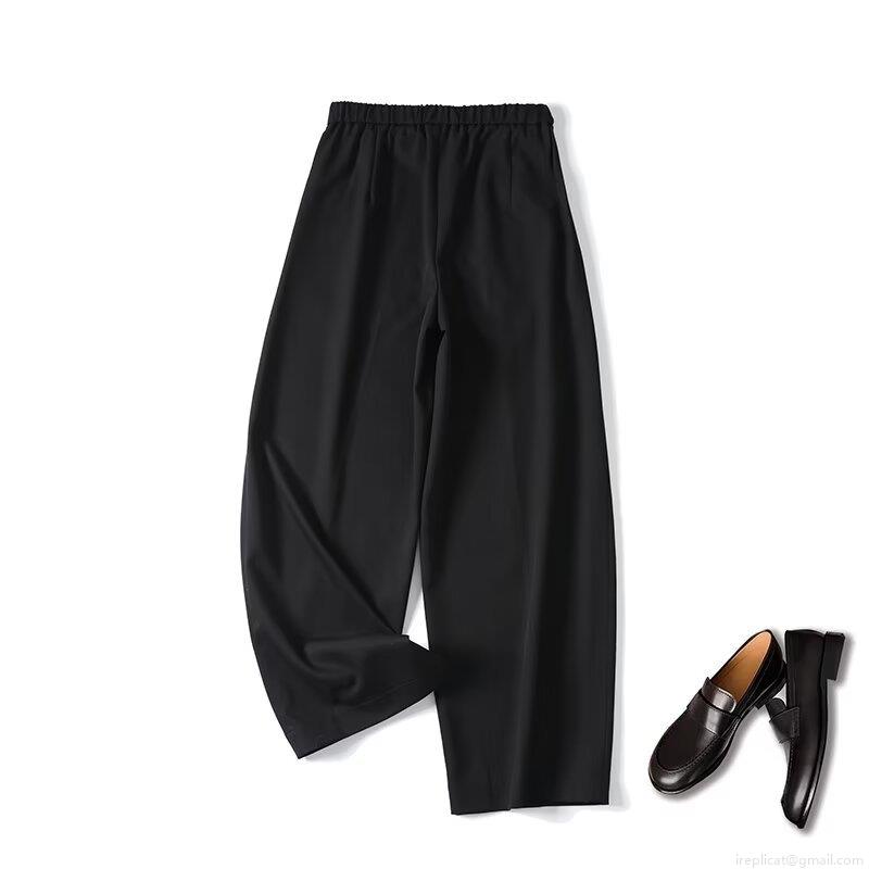 • Women's Casual Wide Leg Curved Trousers Polyester Rayon Blend Solid Black High Waist Loose Fit Pants Fashion Streetwear Slacks for Women
