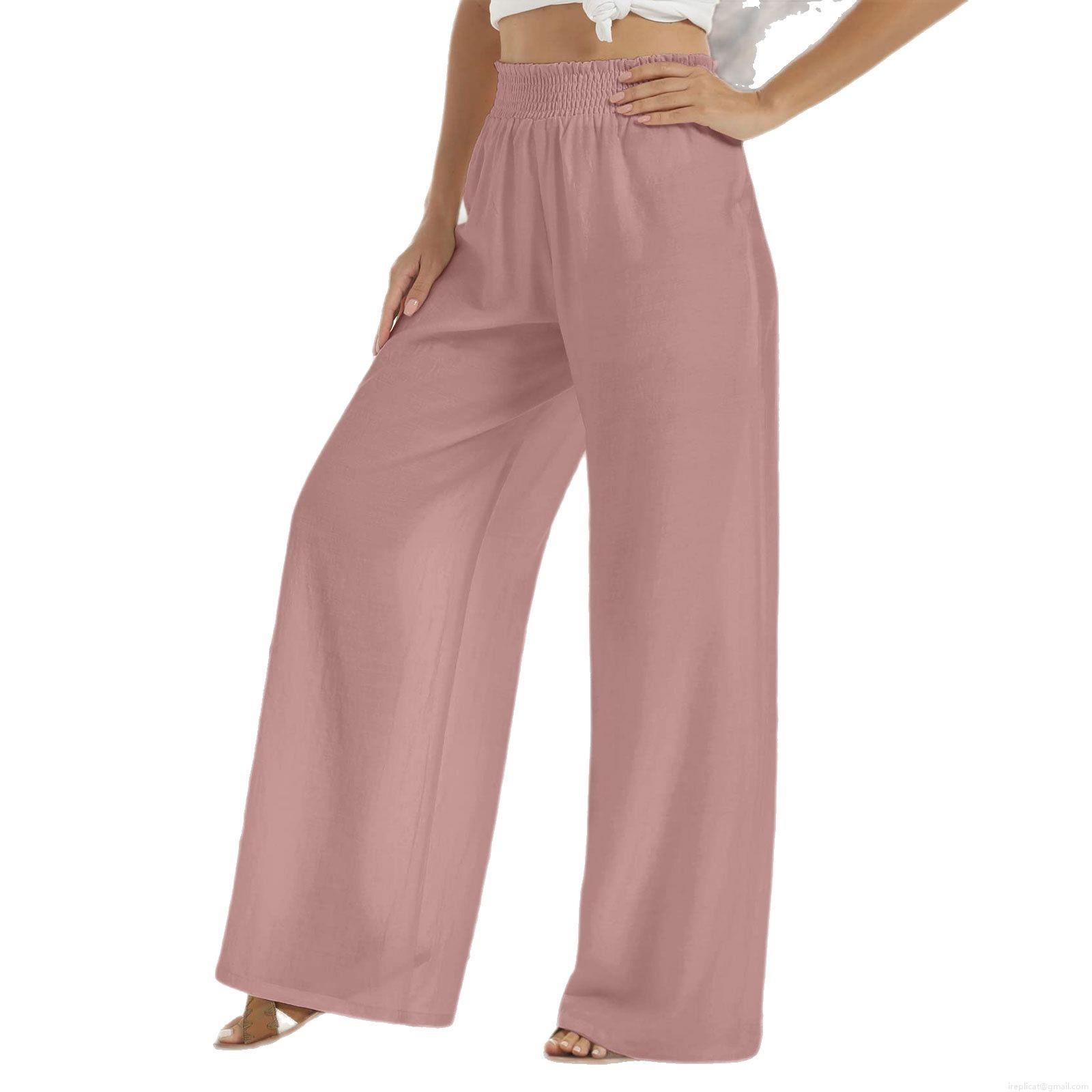 • Women's Casual Wide Leg Pants Cotton Linen High Elastic Waist Drawstring Breathable Trousers For Vacation Daily Beach Summer Loose Fit