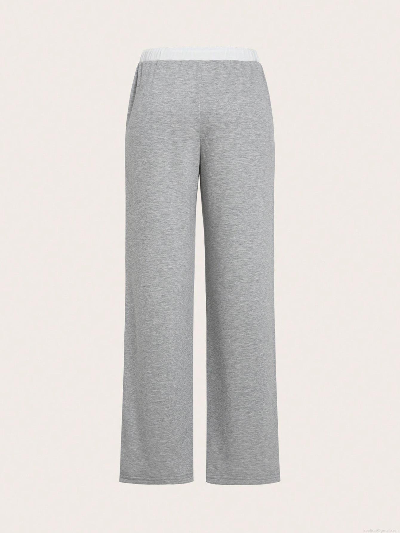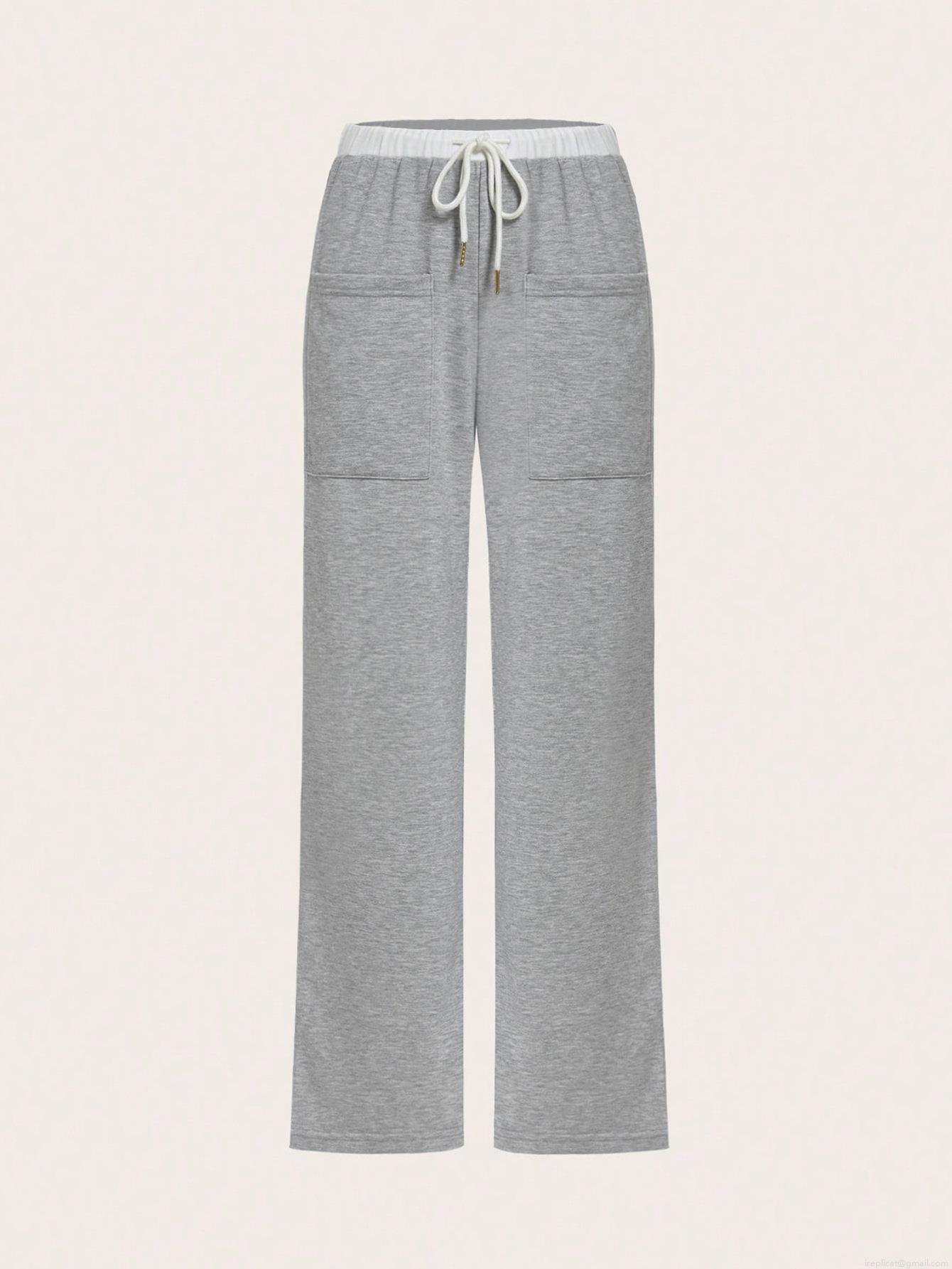 • Women's Casual Wide Leg Sweatpants High Waist Contrast Drawstring Soft Polyester Cotton Knit Loose Straight Leg Trousers for Daily Sport Lounge