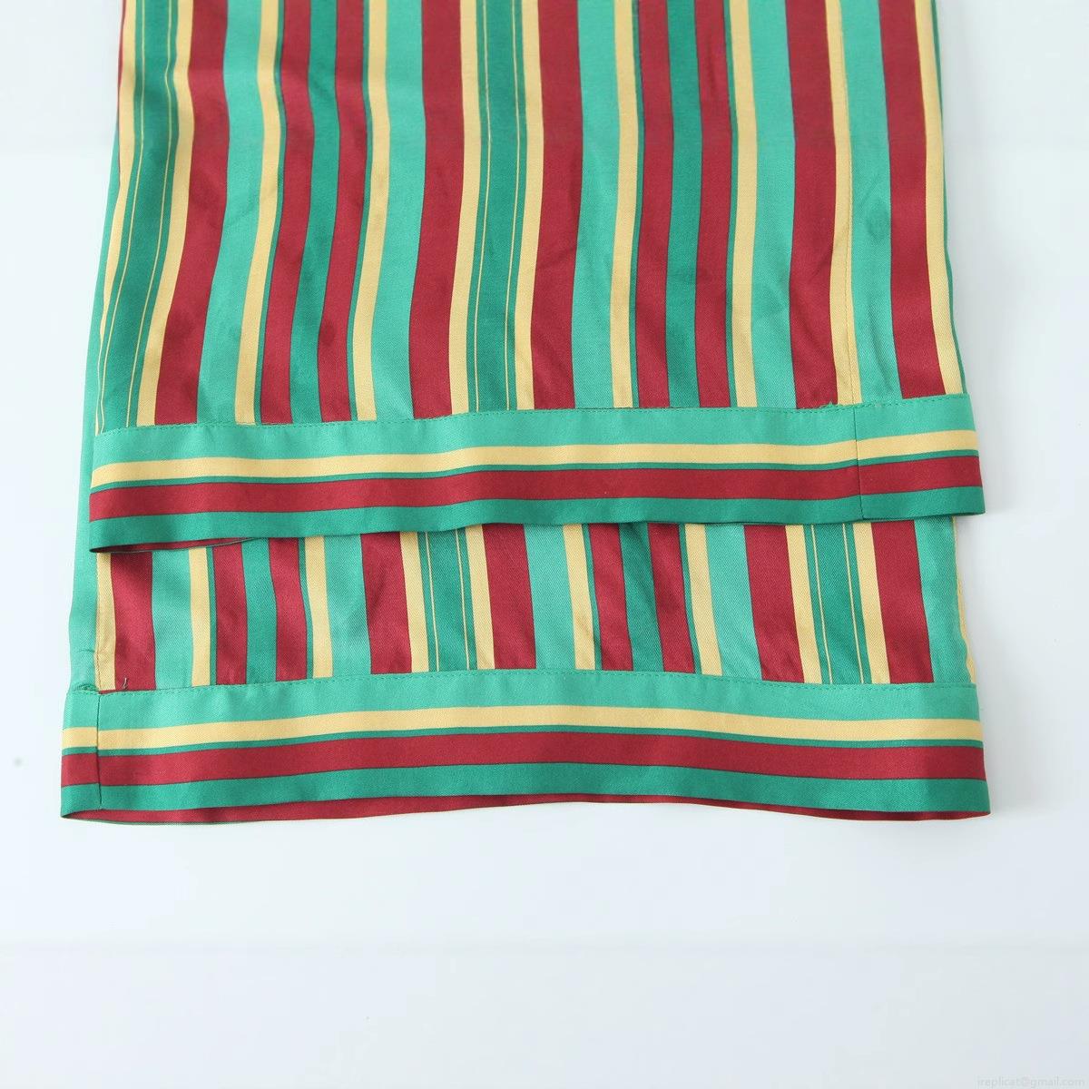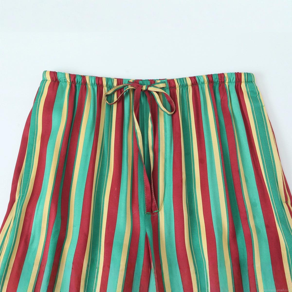 Colorful Stripes, Drawstring, Vertical Stripes, Elastic Waistband, Wide-leg, Satin Texture