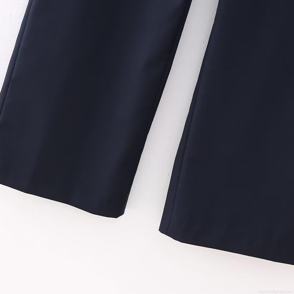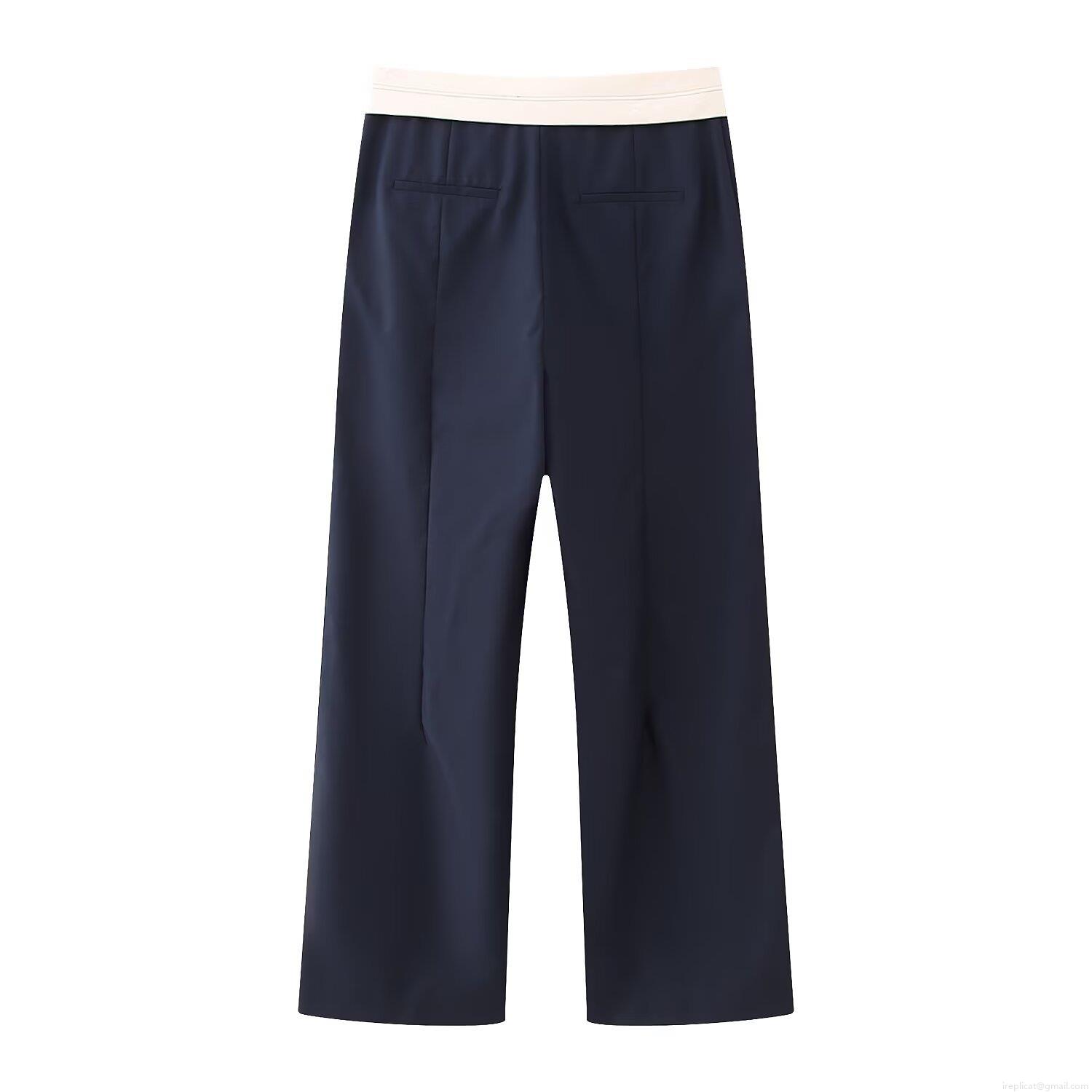 • Women's Contrast Color Waistband Straight Leg Trousers High Waist Casual Polyester Long Pants For Office Commuter Minimalist Style
