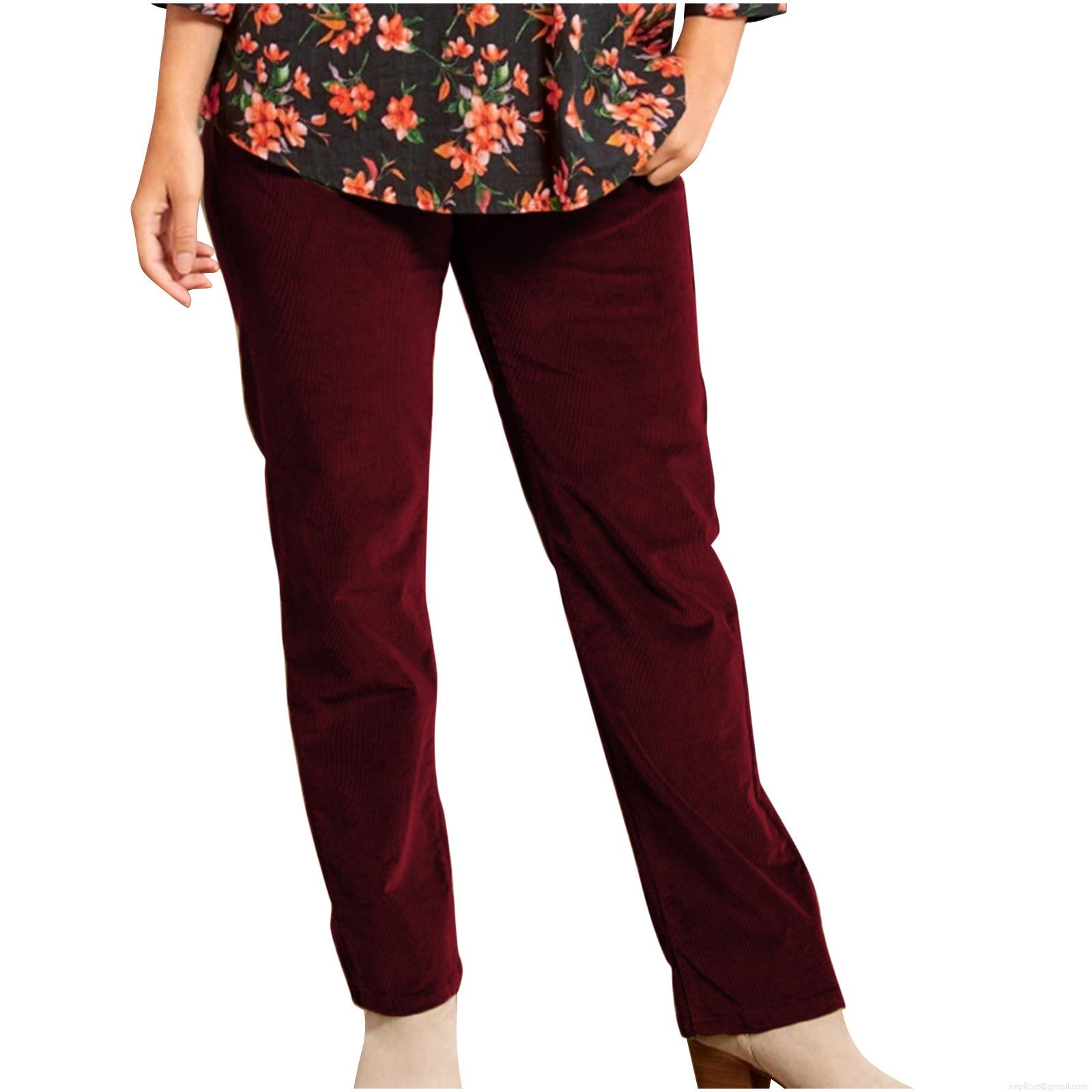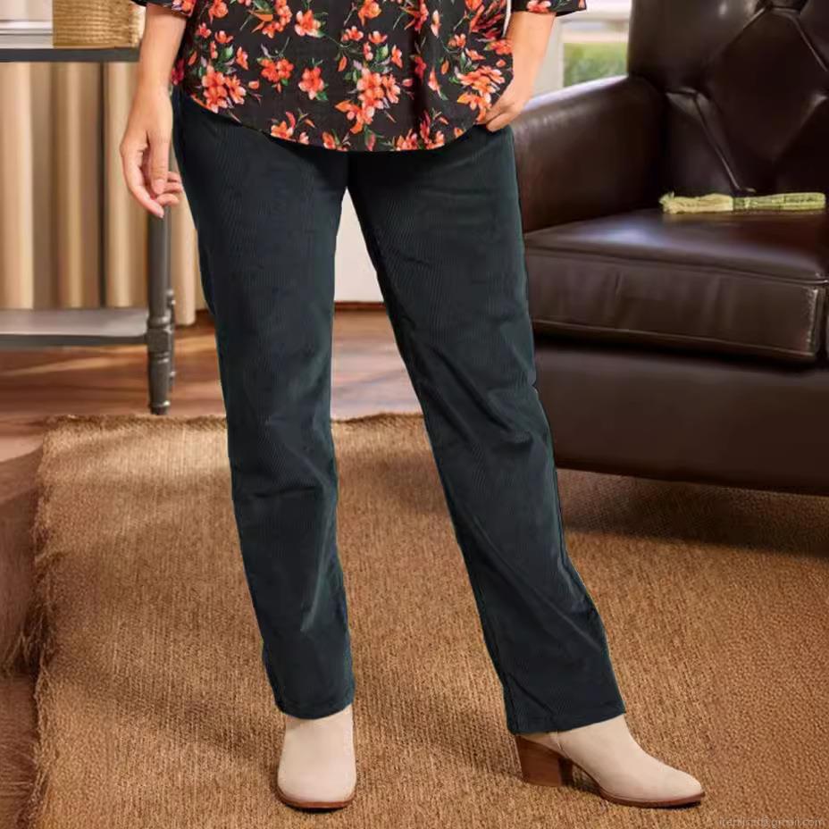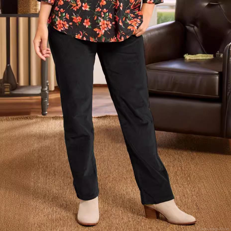 • Women's Corduroy Straight Leg Pants Casual Elastic High Waist Solid Color Trousers With Pockets Warm Autumn Winter Loose Fit Long Pants For Women