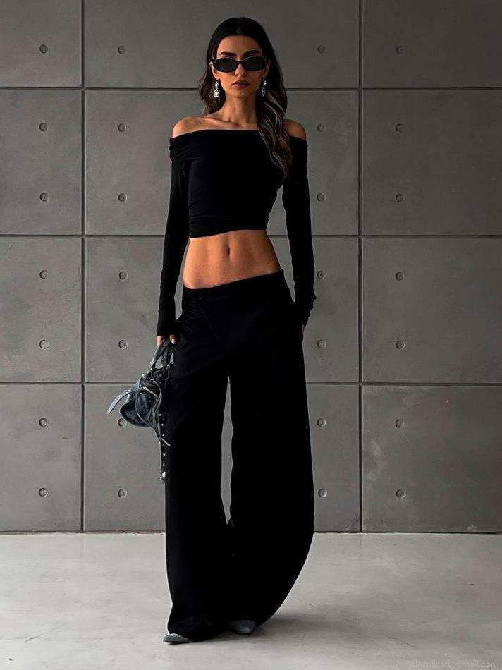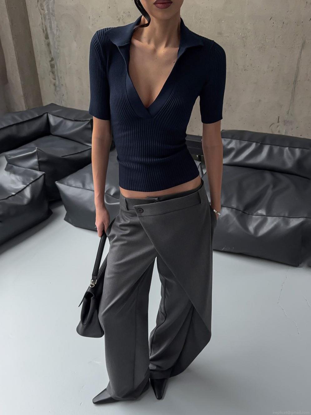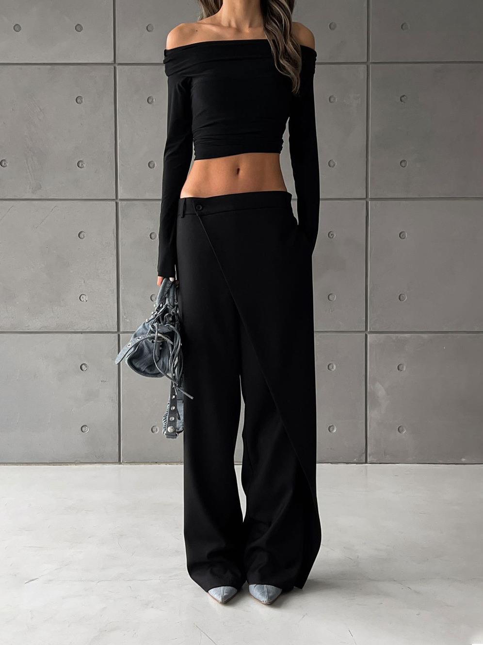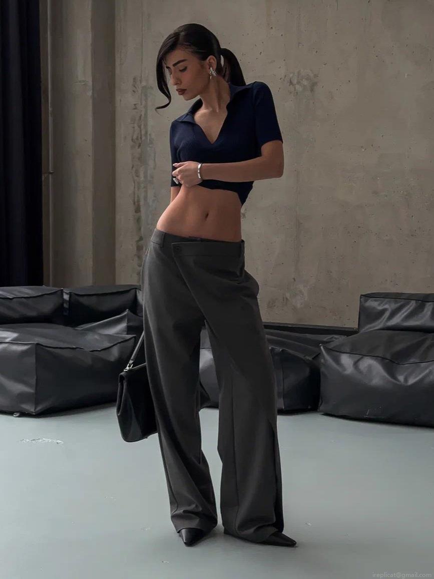 • Women's Cotton Blend High Waist Wide Leg Trousers Asymmetric Wrap Front Suit Pants Minimalist Drapey Office Long Pants