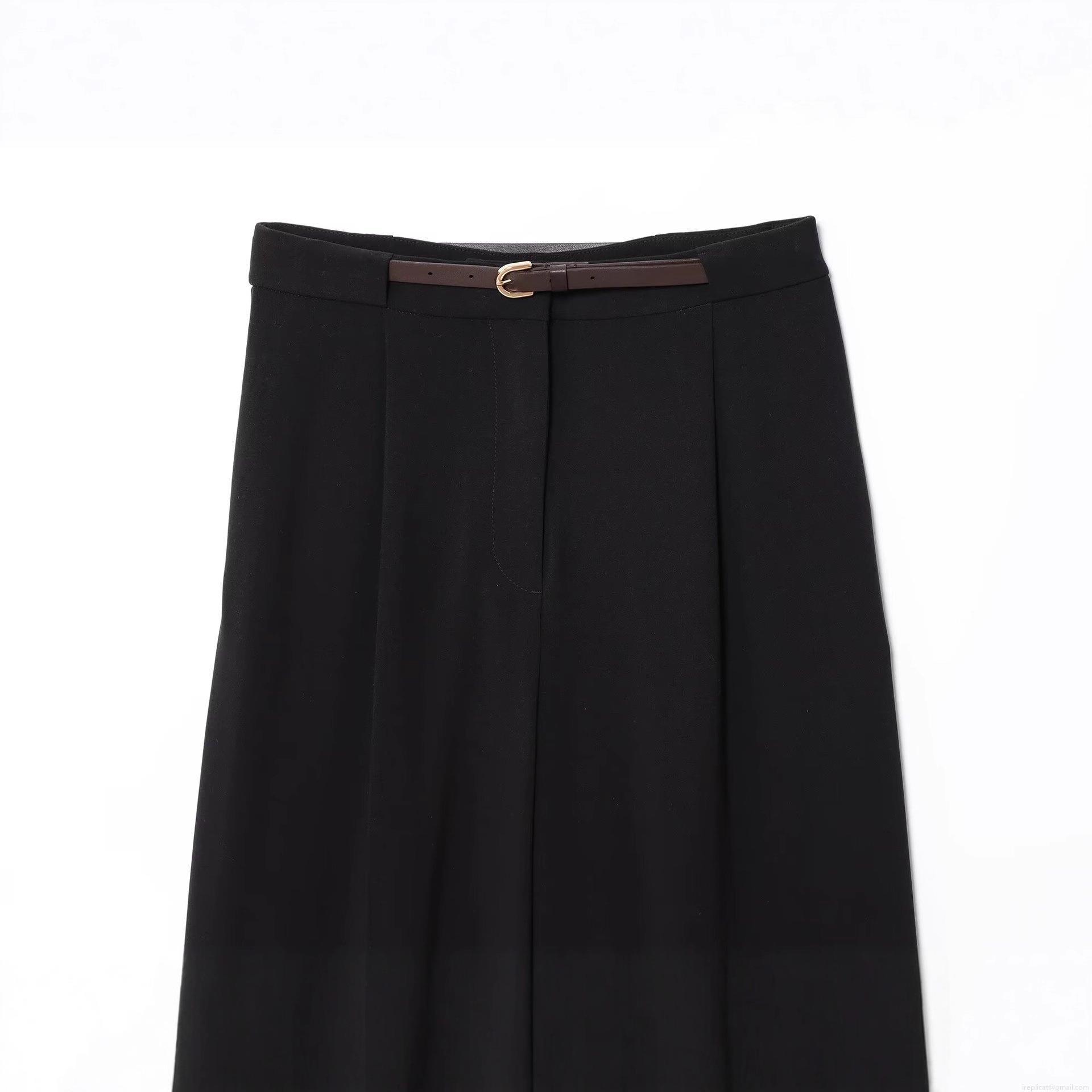 • Women's Elegant High Waist Straight Leg Suit Pants With Brown Belt Fashion Pleated Solid Color Casual Trousers For Office Commute Lady