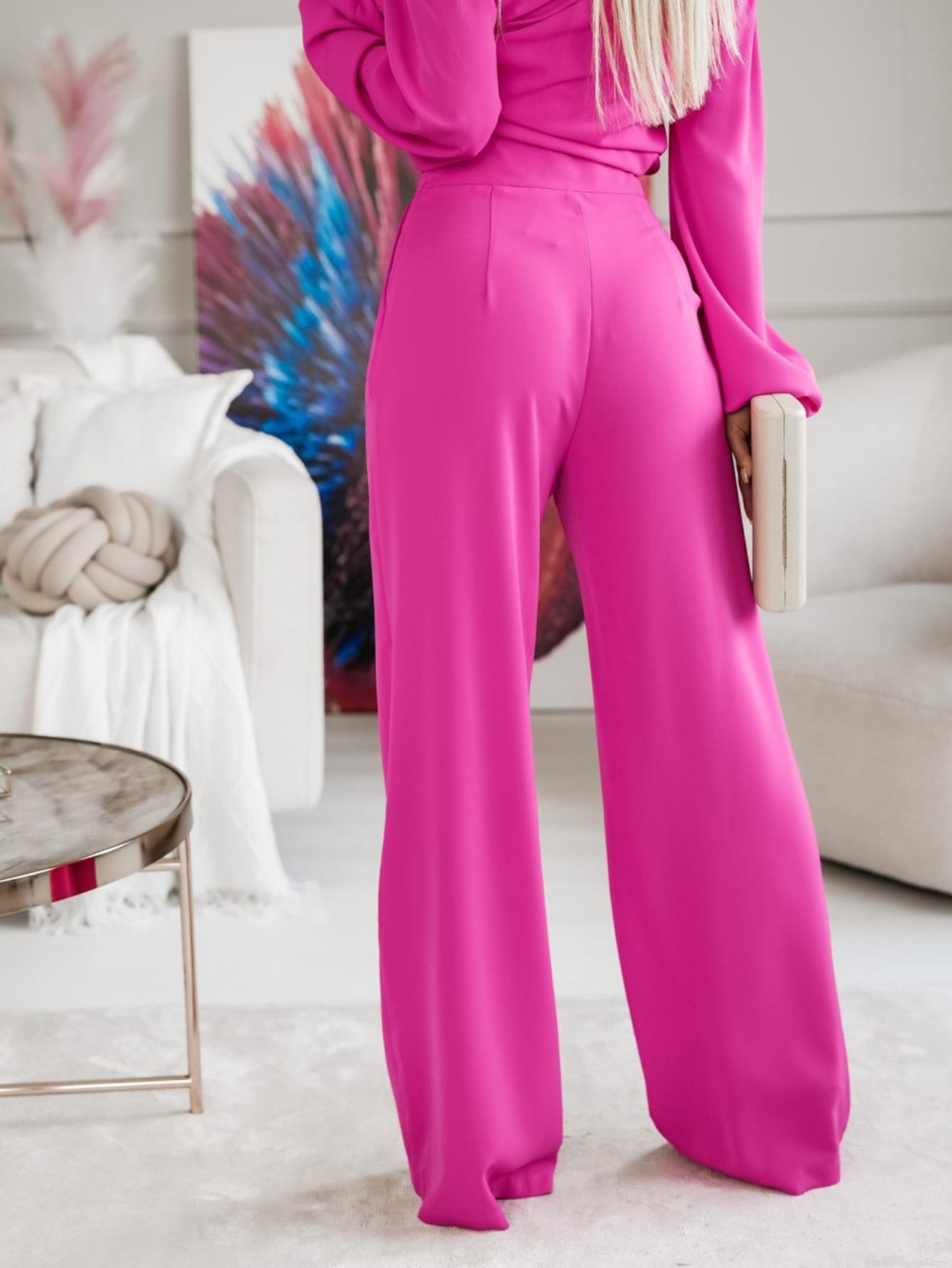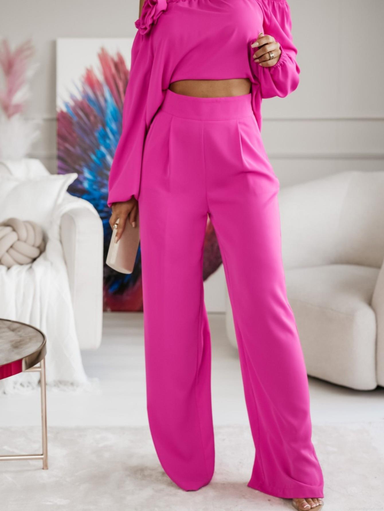 • Women's Elegant High Waist Wide Leg Pants Solid Color Polyester Commuter Straight Trousers For Office Lady Daily Wear Fashion Loose Long Pants