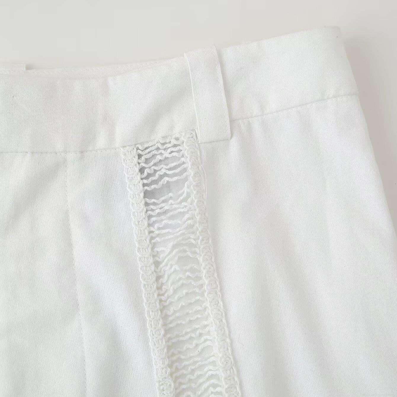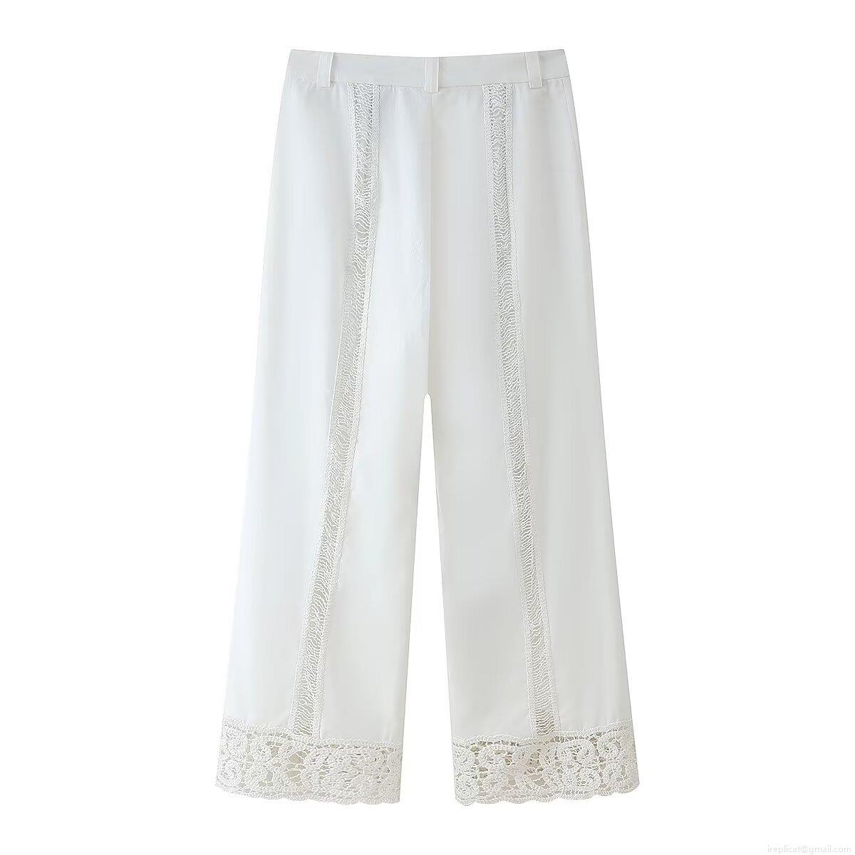 • Women's Elegant Wide Leg Pants With Hollow Lace Splicing High Waist Straight Trousers Solid White Polyester Long Pants For Casual Dating Party Ladies Sweet Streetwear