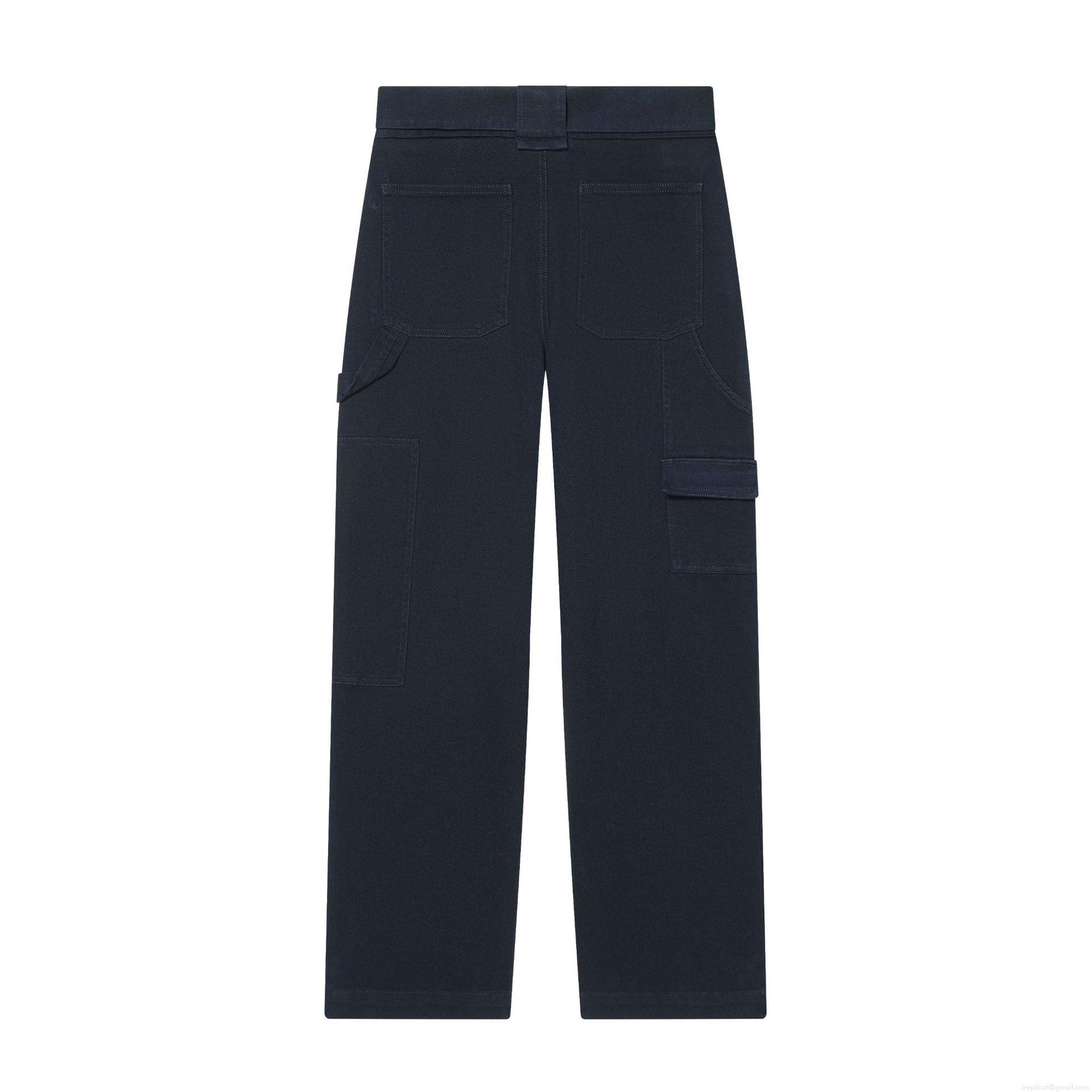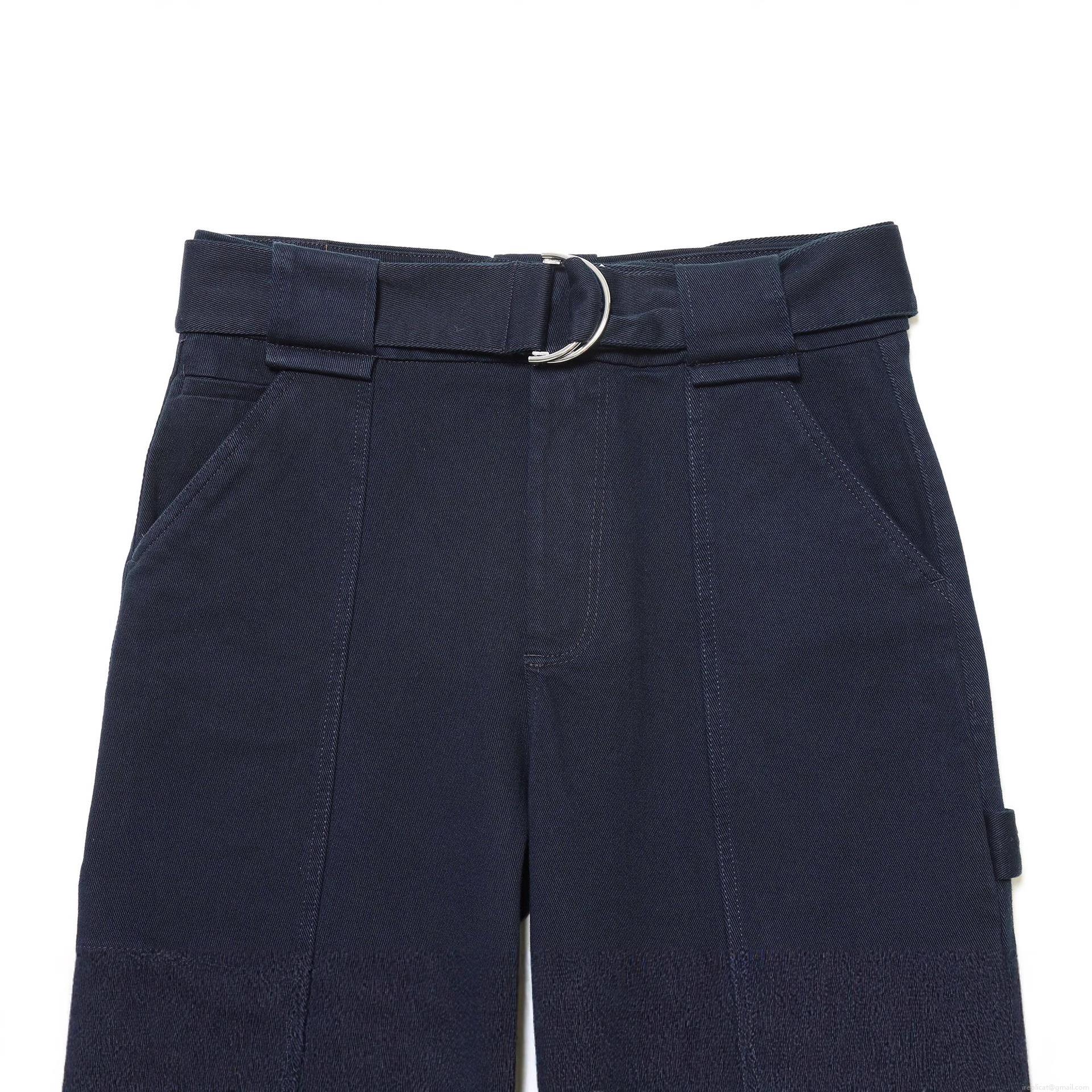 • Women's Fashion Casual Cargo Pants With Belt High Waist Deep Blue Twill Straight Leg Trousers Multi Pockets Streetwear Lady Utility Work Pants