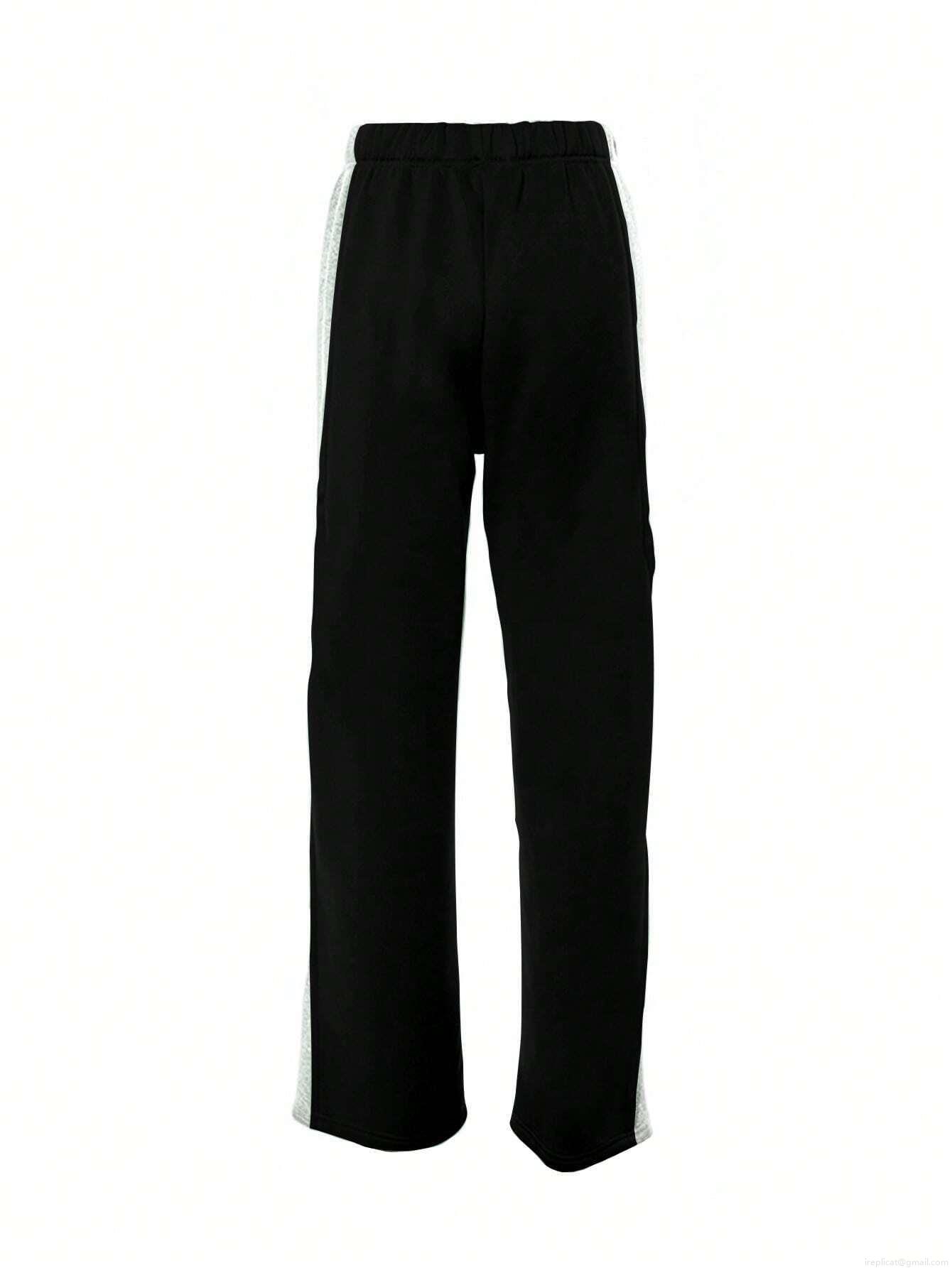 Color Blocking, Elastic Waistband, Side Fork, Wide-leg Design