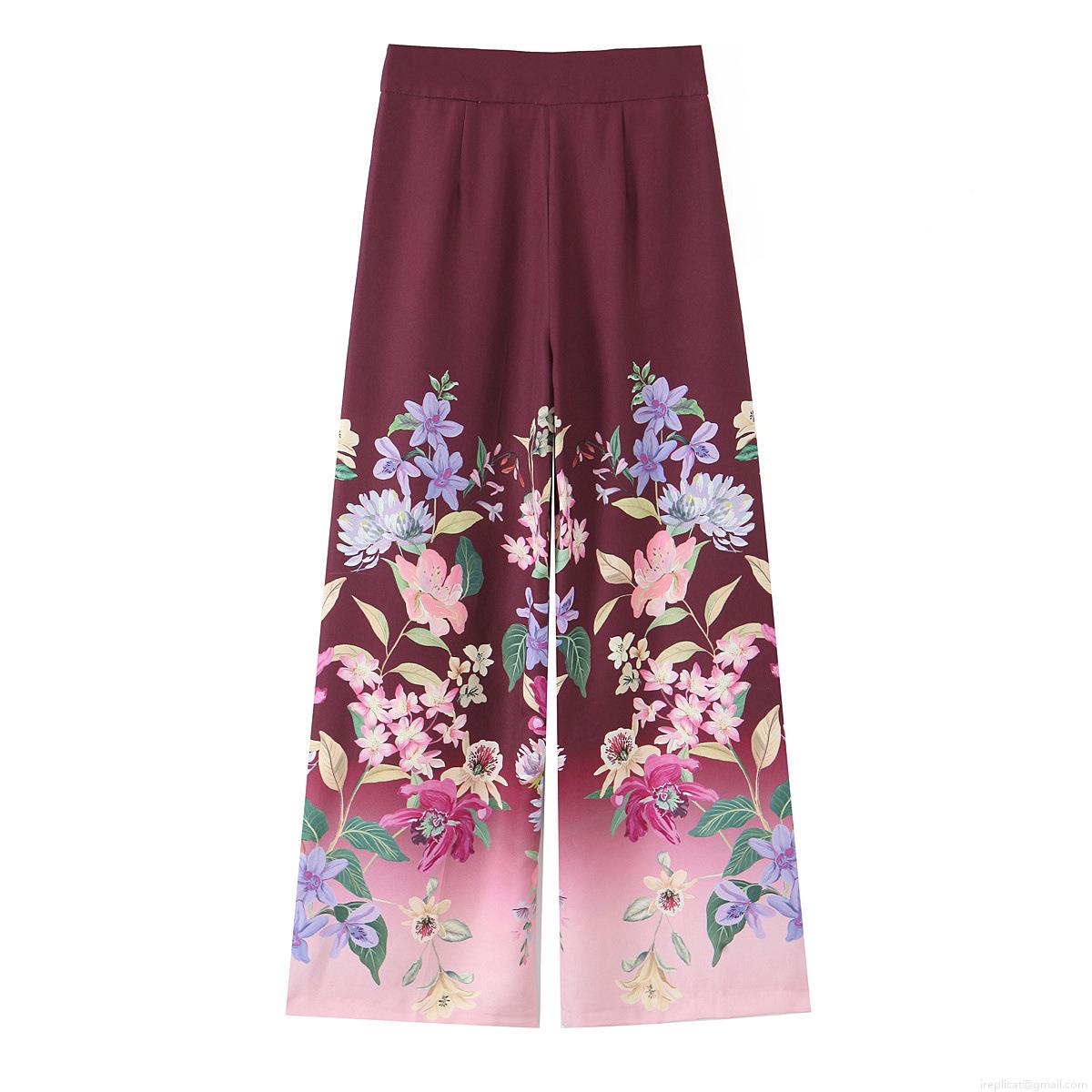 • Women's Fashion Floral Print Wide Leg Pants High Waist Burgundy Gradient Straight Trousers For Casual Vacation Party Ladies Clothing