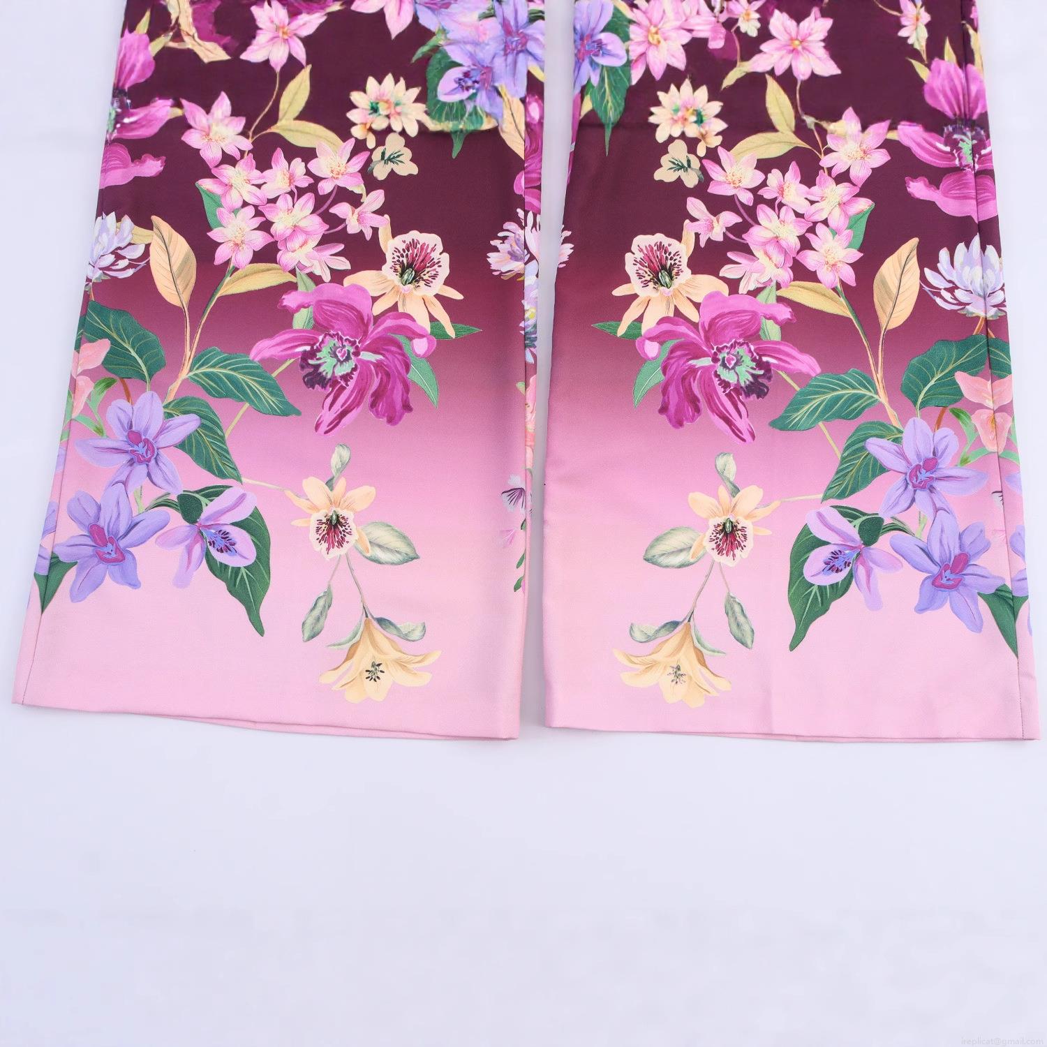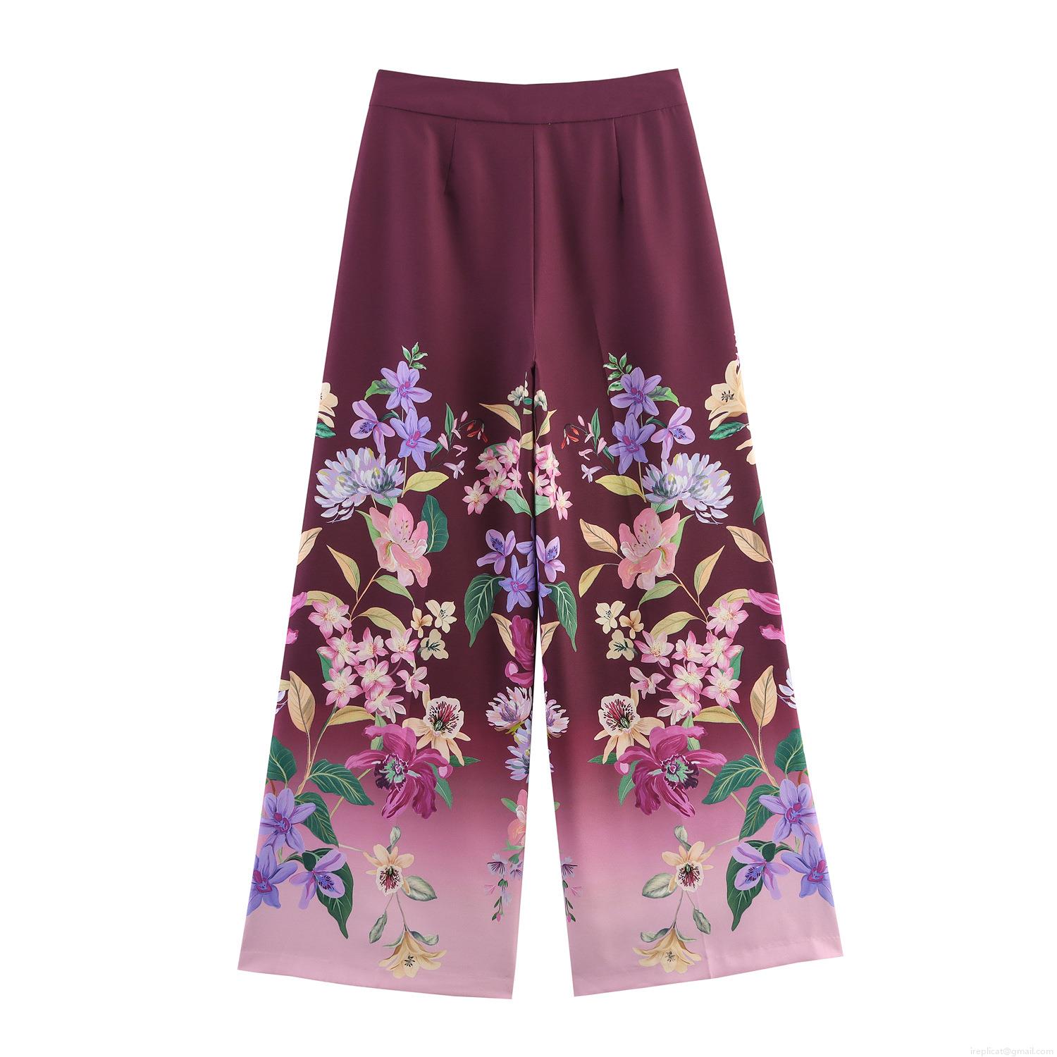 • Women's Fashion Floral Print Wide Leg Pants High Waist Polyester Gradient Long Trousers For Casual Vacation Summer Spring Breathable Comfortable Bottoms